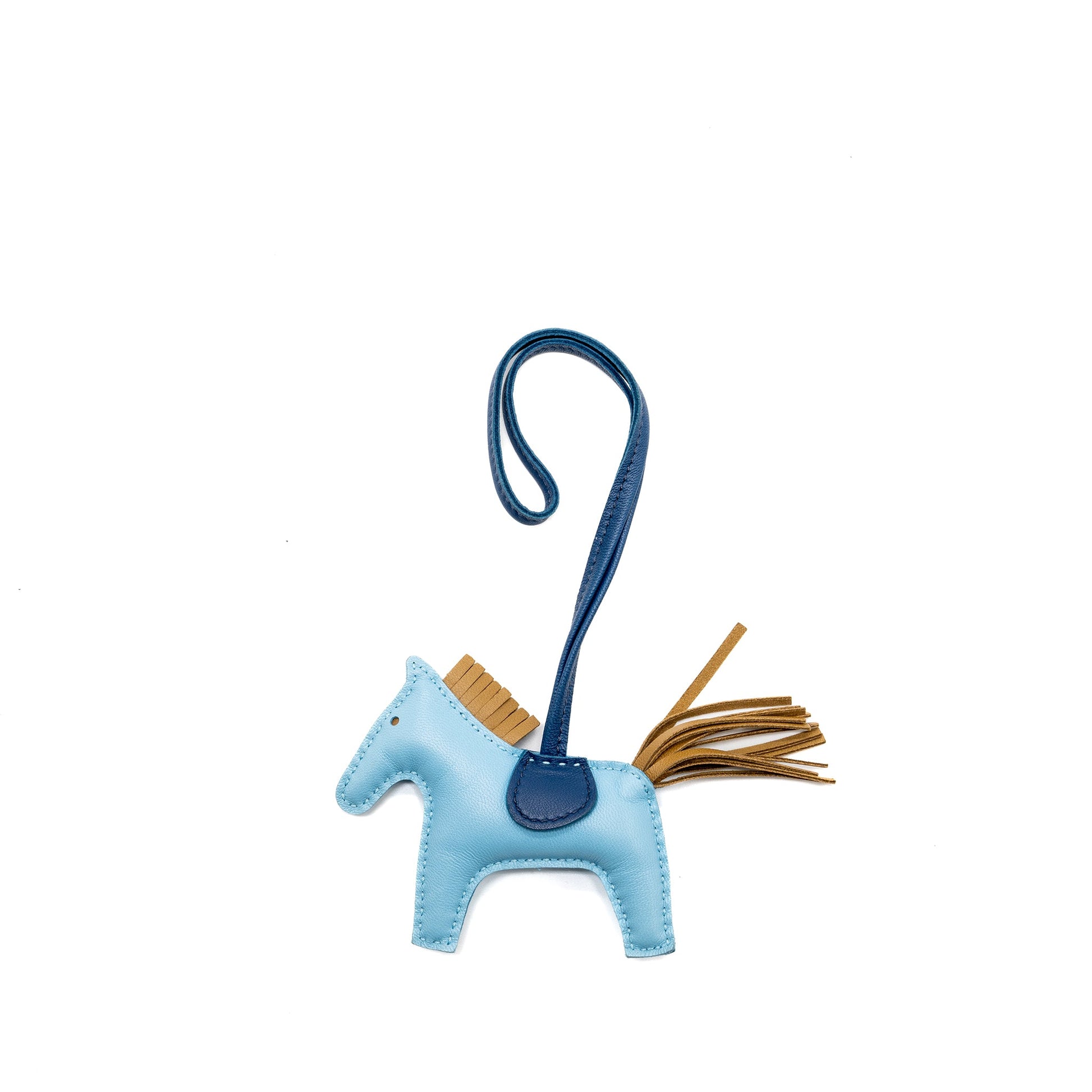 Hermes rodeo pm bag charm blue celeste / kraft/ blue de matte Stamp D