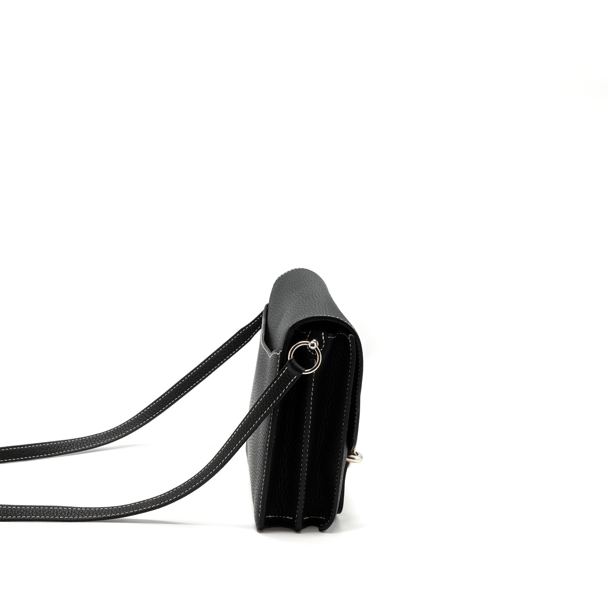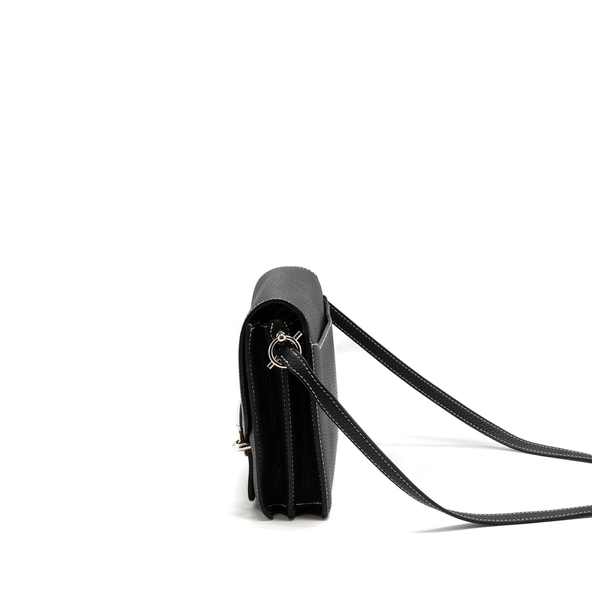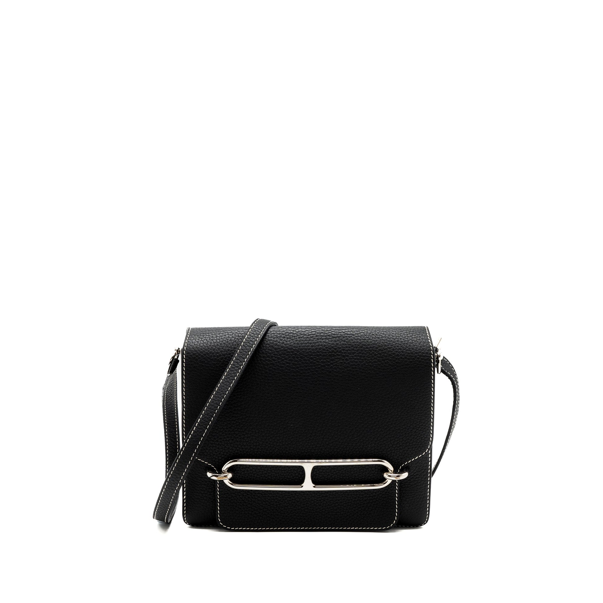 Details: Condition: 9.5/10 Well New (This item is in New condition with s light rubbing on edges, slight scratches on hardware, slight sign of use inside.) Colour: Black Hardware Colour: Silver Tone Measurement: Length: 23 cm Height: 21 cm Depth: 6 cm Strap Drop: ~49 cm Material : Clemence Leather Stamp: Square R Origin : France Inclusion: Dust Bag