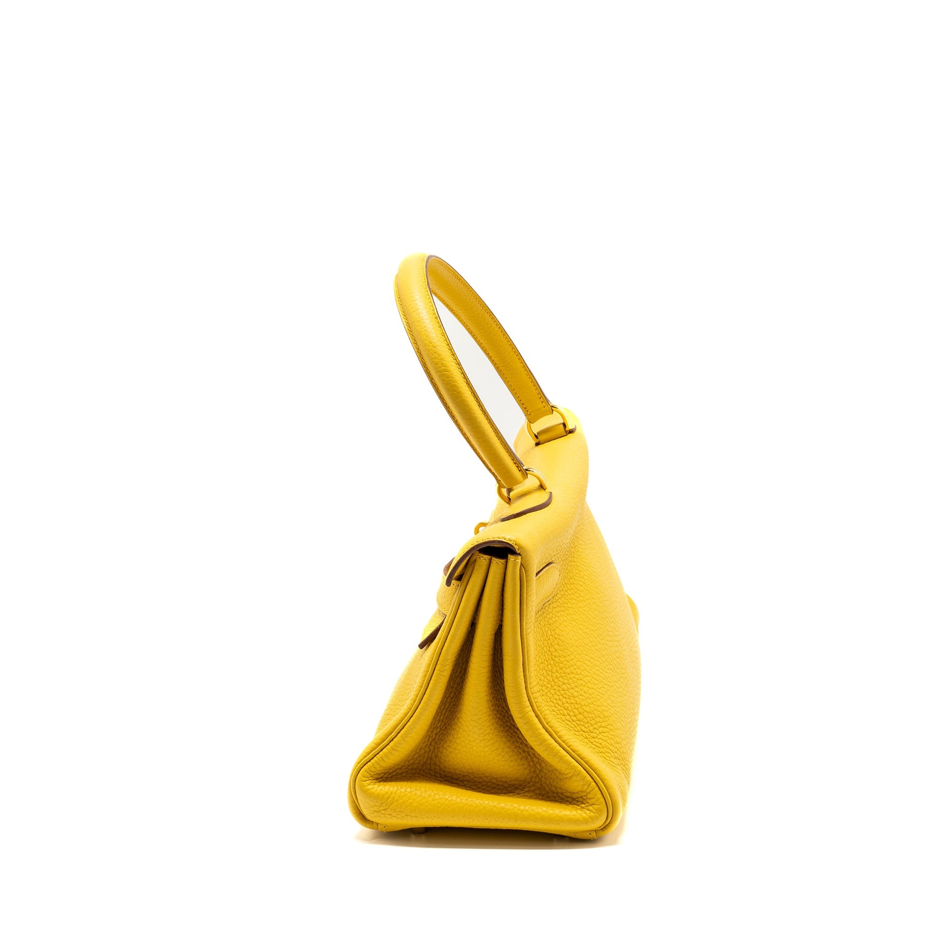 Hermes shoulder kelly clemence jaune amber GHW Stamp Square N
