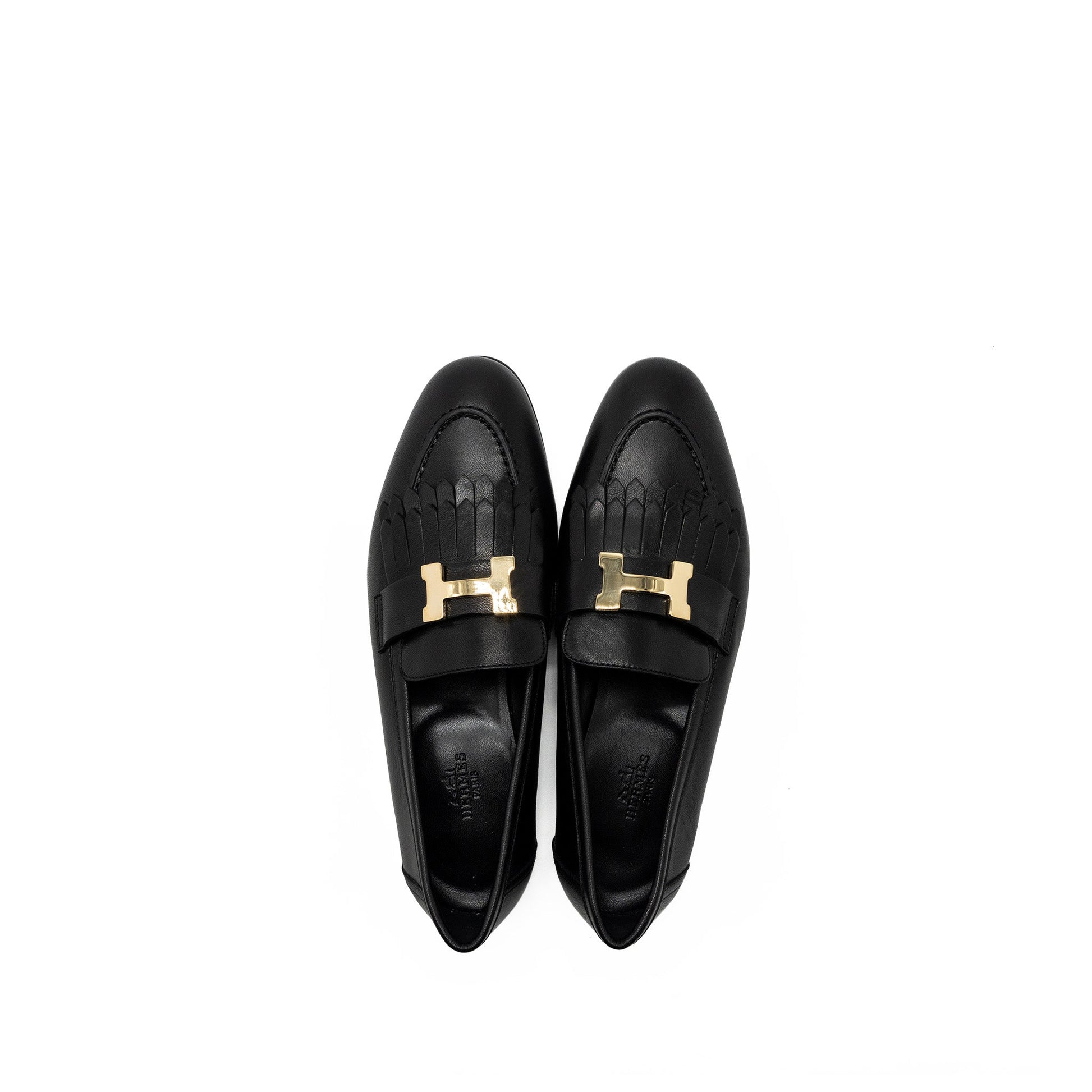 Details: Condition : 9.9/10 New ( This item is in excellent conditionwith s light dents on the sole.) Size: 36.5 (We do not offer exchange or refund if the size does not fit. Please contact support before the purchase for assistance ) Material: Calfskin Leather Colour: Black Inclusion: Dust Bag, Box