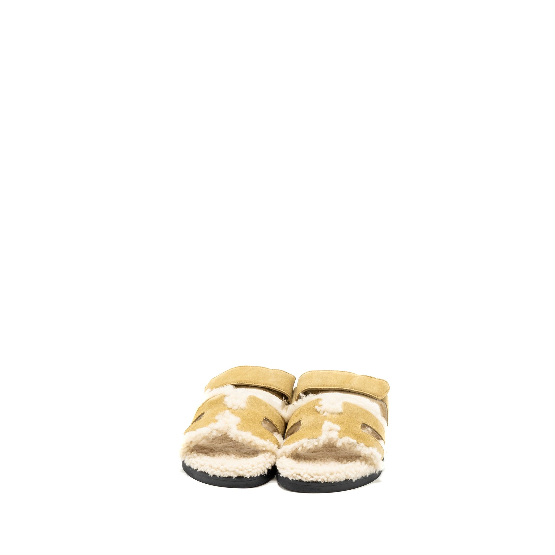 Hermes size 36 chypre sandals chevre velours beige albatre