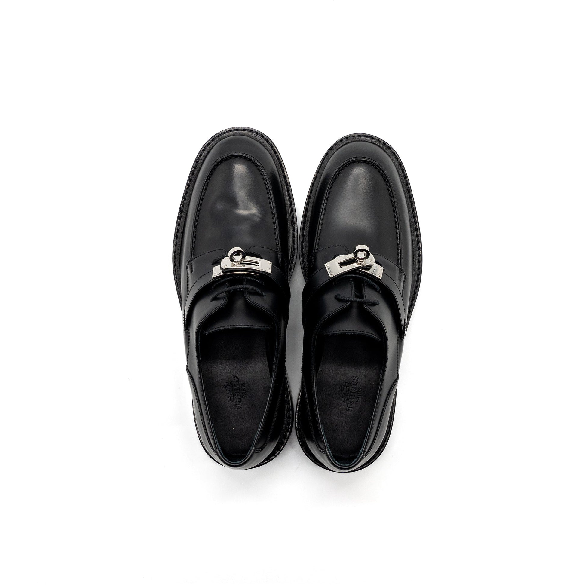 hermes size 37.5 first derby oxford loafer calfskin black SHW