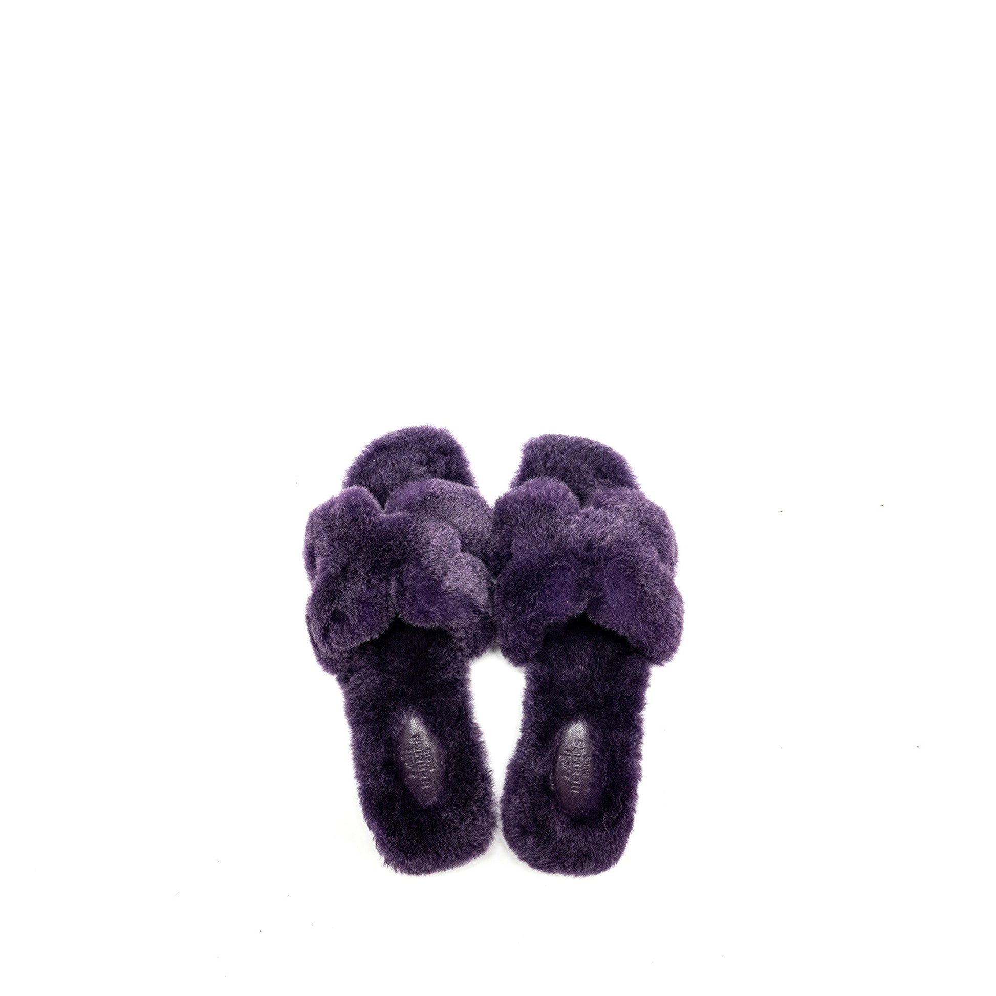 Hermes size 37.5 oran sandal shearling purple