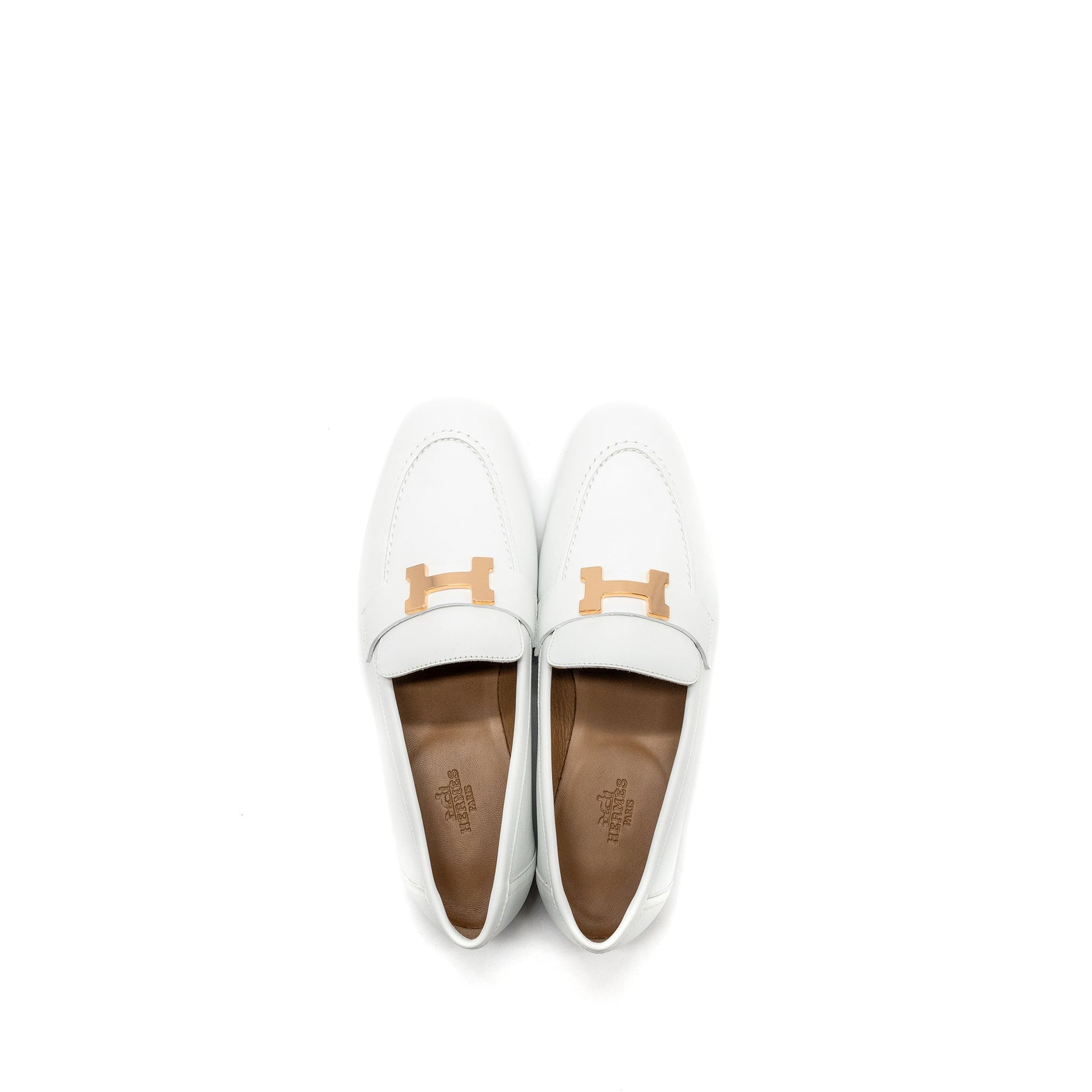 Hermes Size 37.5 Paris Loafer Calfskin White RGHW