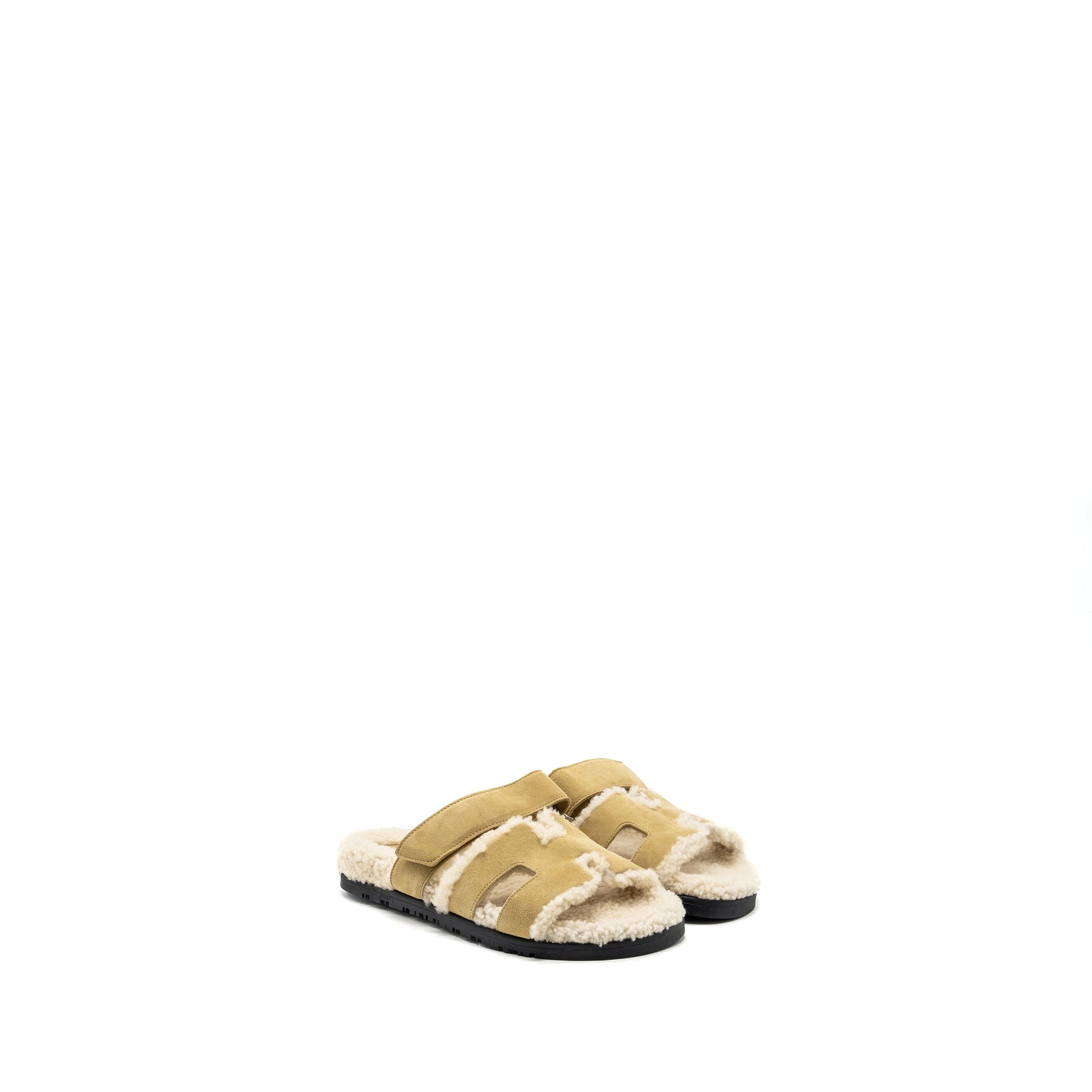 Hermes size 37 chypre sandals chèvre velours beige Albatre