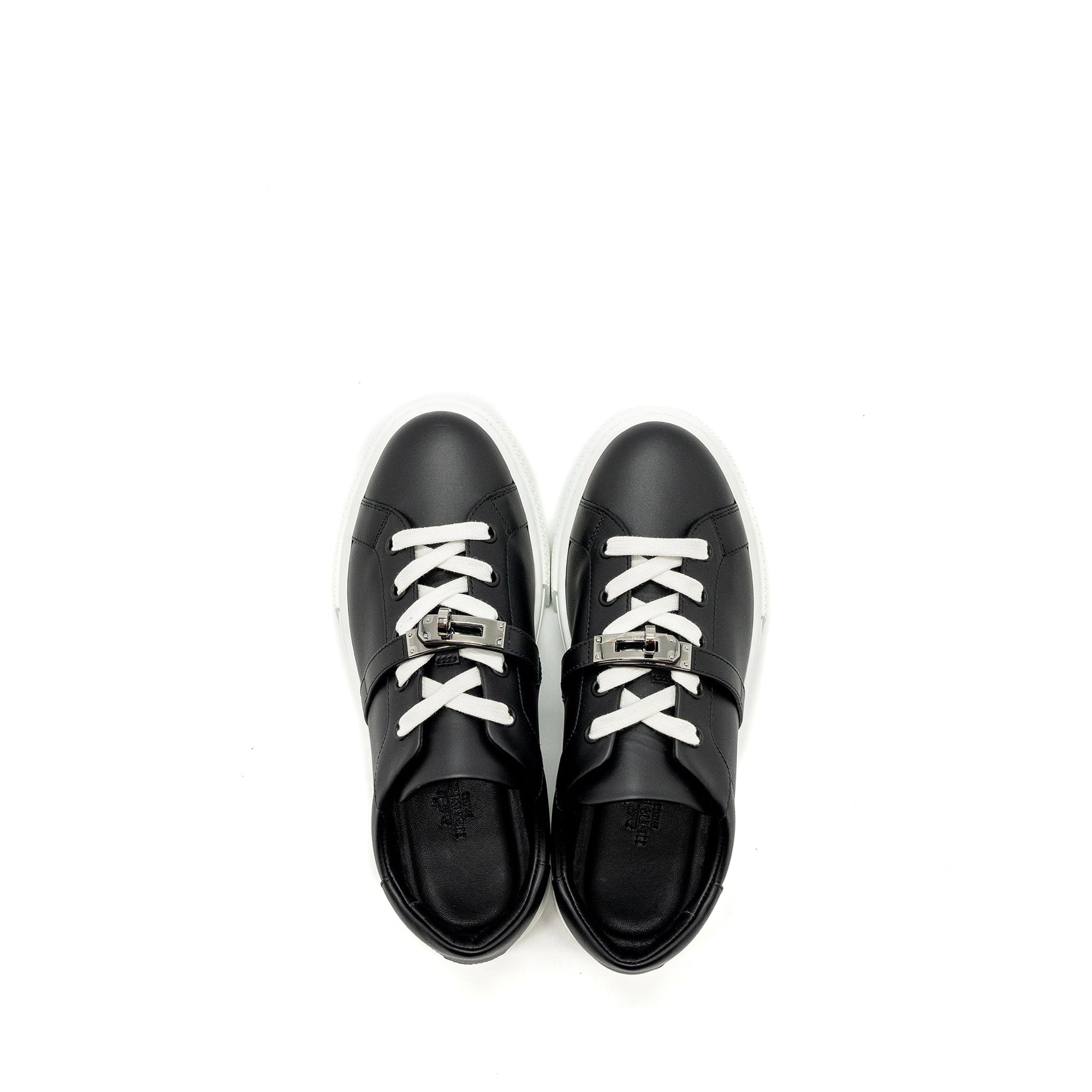 Hermes Size 37 Femme Day Sneaker Calfskin Noir SHW