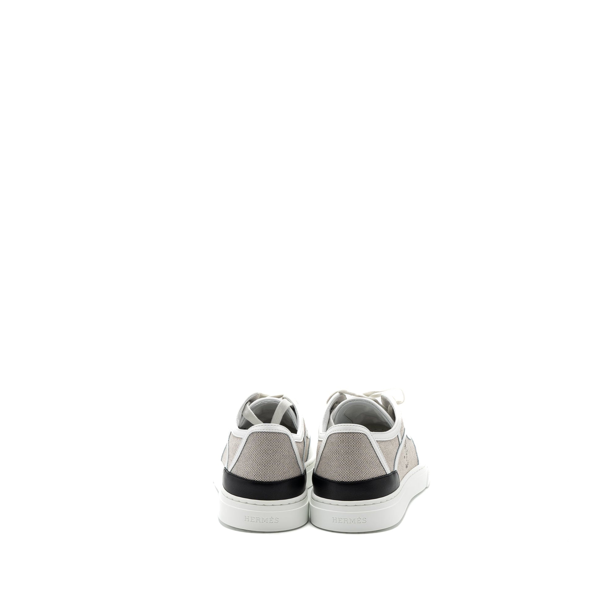 Hermes size 37 get sneaker calfskin / canvas prunoir / blanc