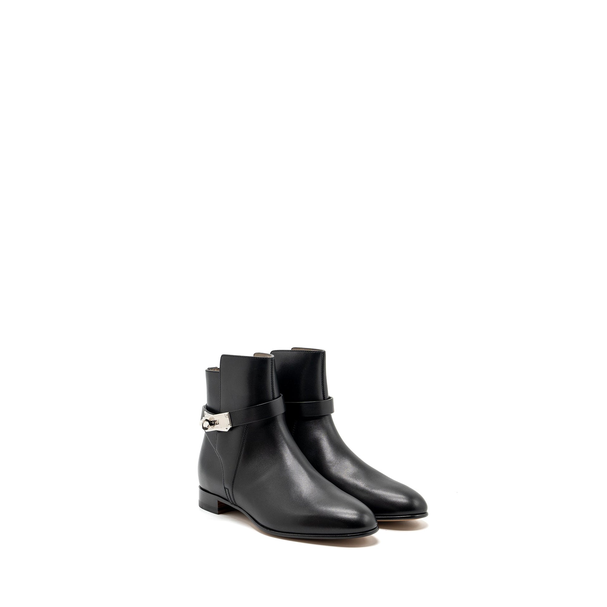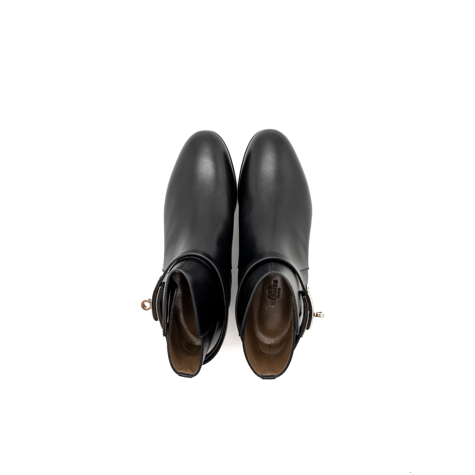 Hermes Size 37 Neo Ankle Boots Calfskin Black SHW