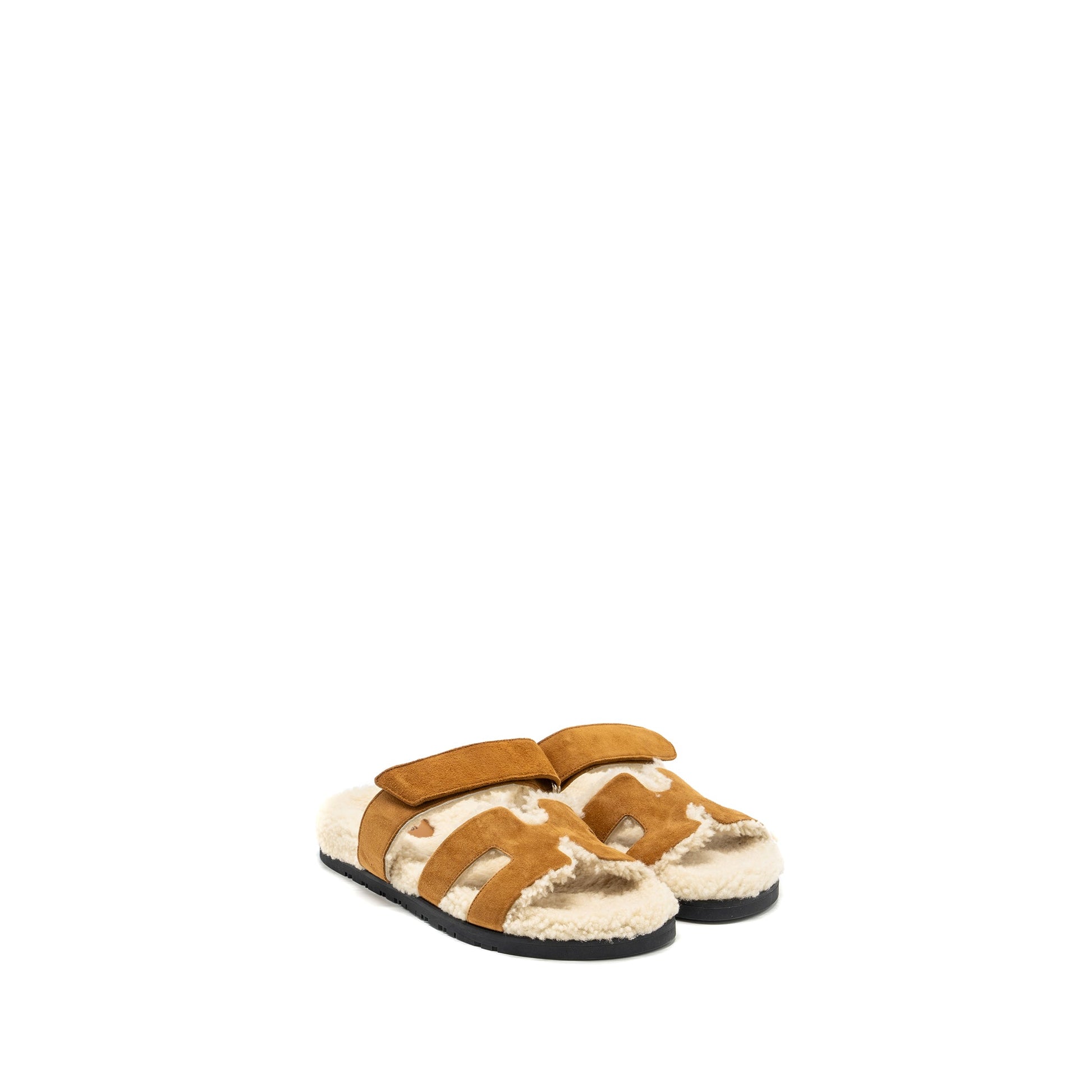 HERMES Size 38 Chypre Sandal Chevre goatskin /Shearling Naturel/Ecru