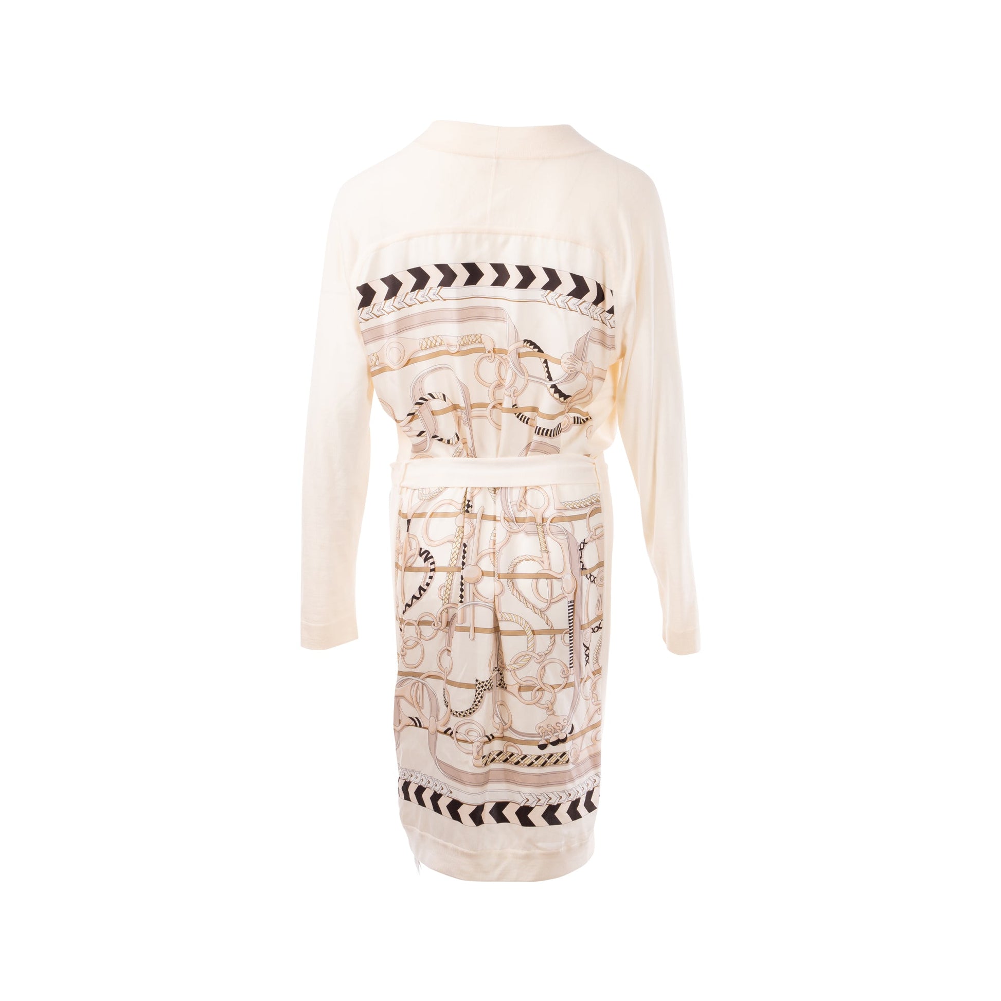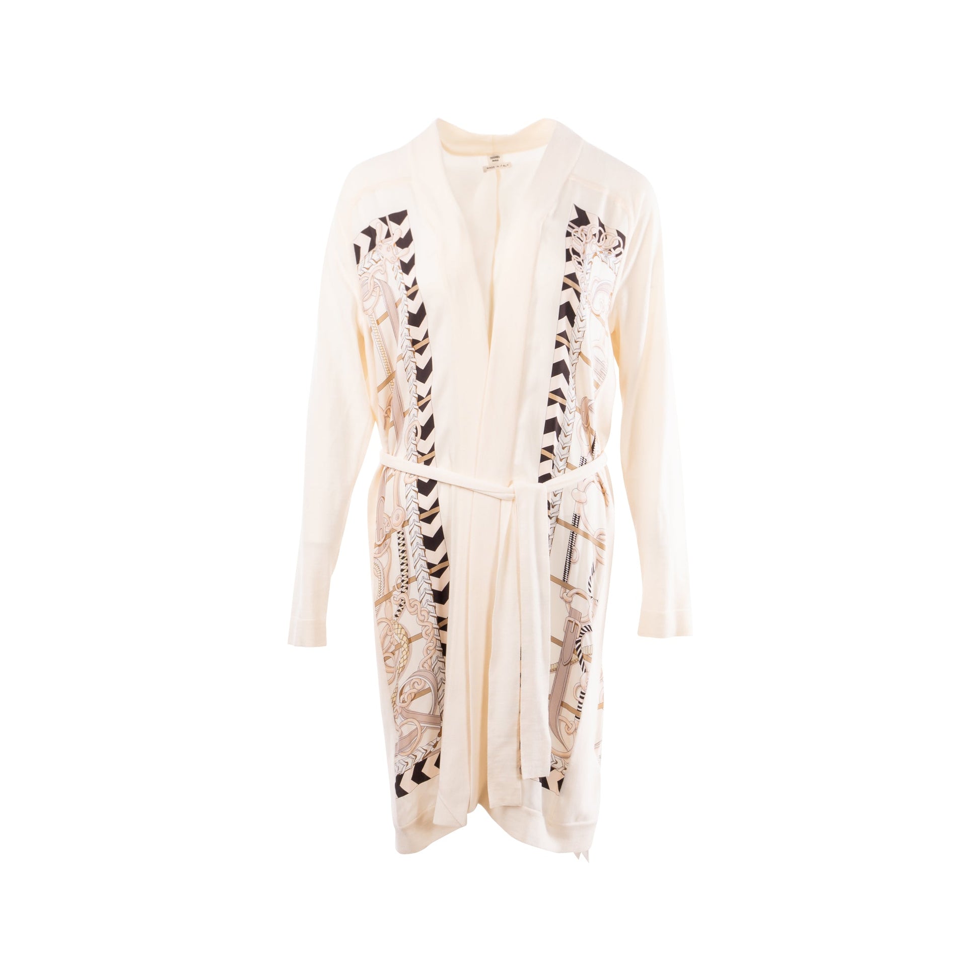 Hermes Size 38 Long Twillaine Cardigan Silk/Wool White/Multicolour