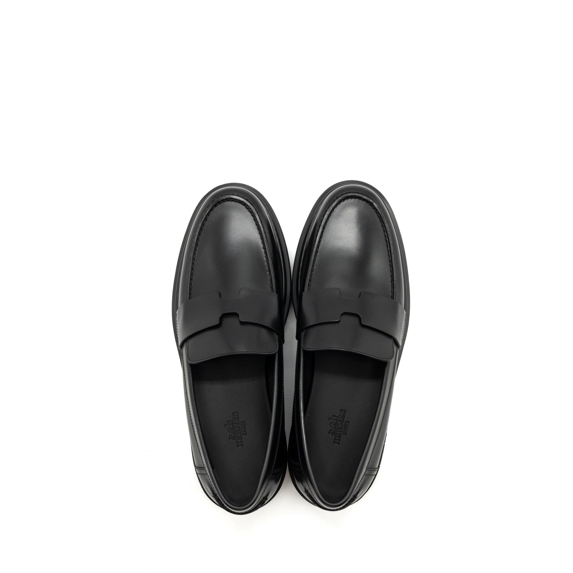 Hermes Size 38 Mocassins Hitch Loafer glacéd calfskin Black