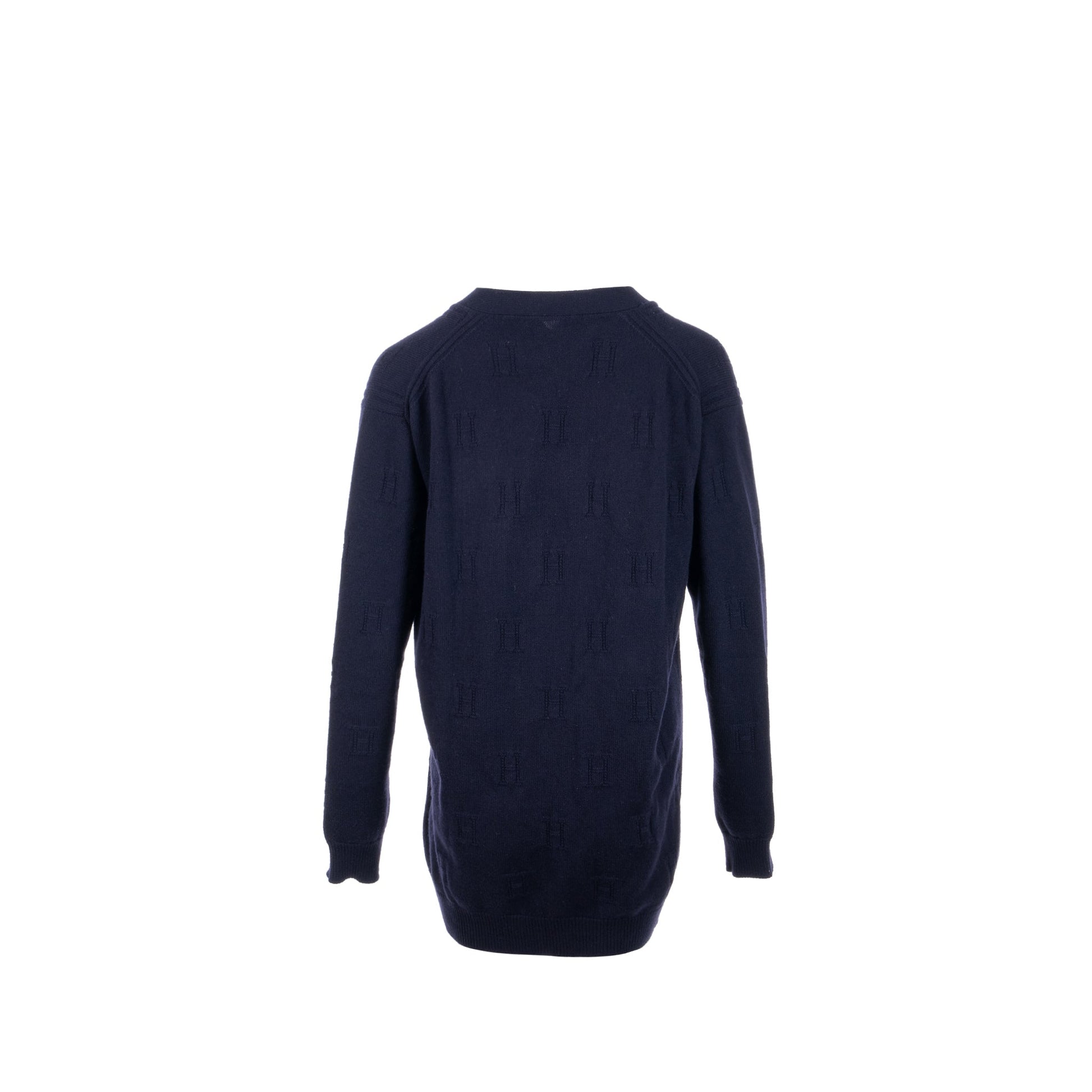 Hermes Size 40 Maile Voyage H logo Classic Knit Cardigan Virgin Wool Bleu Noir
