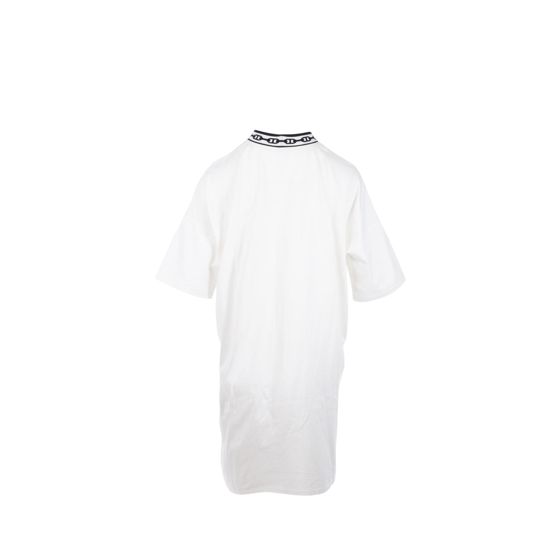 Hermes Size 42 Robe Detail Chaine Ancre Jersey Dress Cotton White/Black