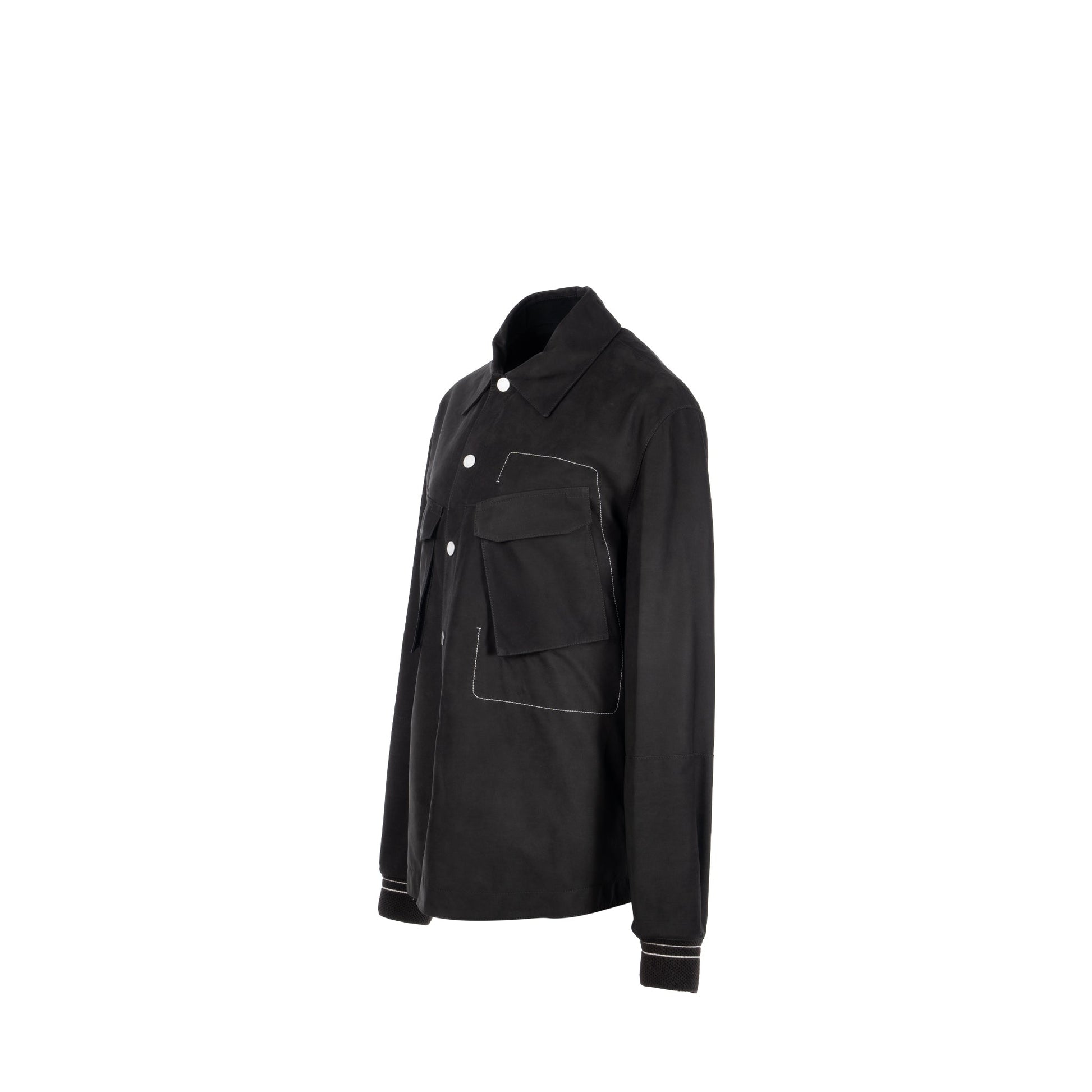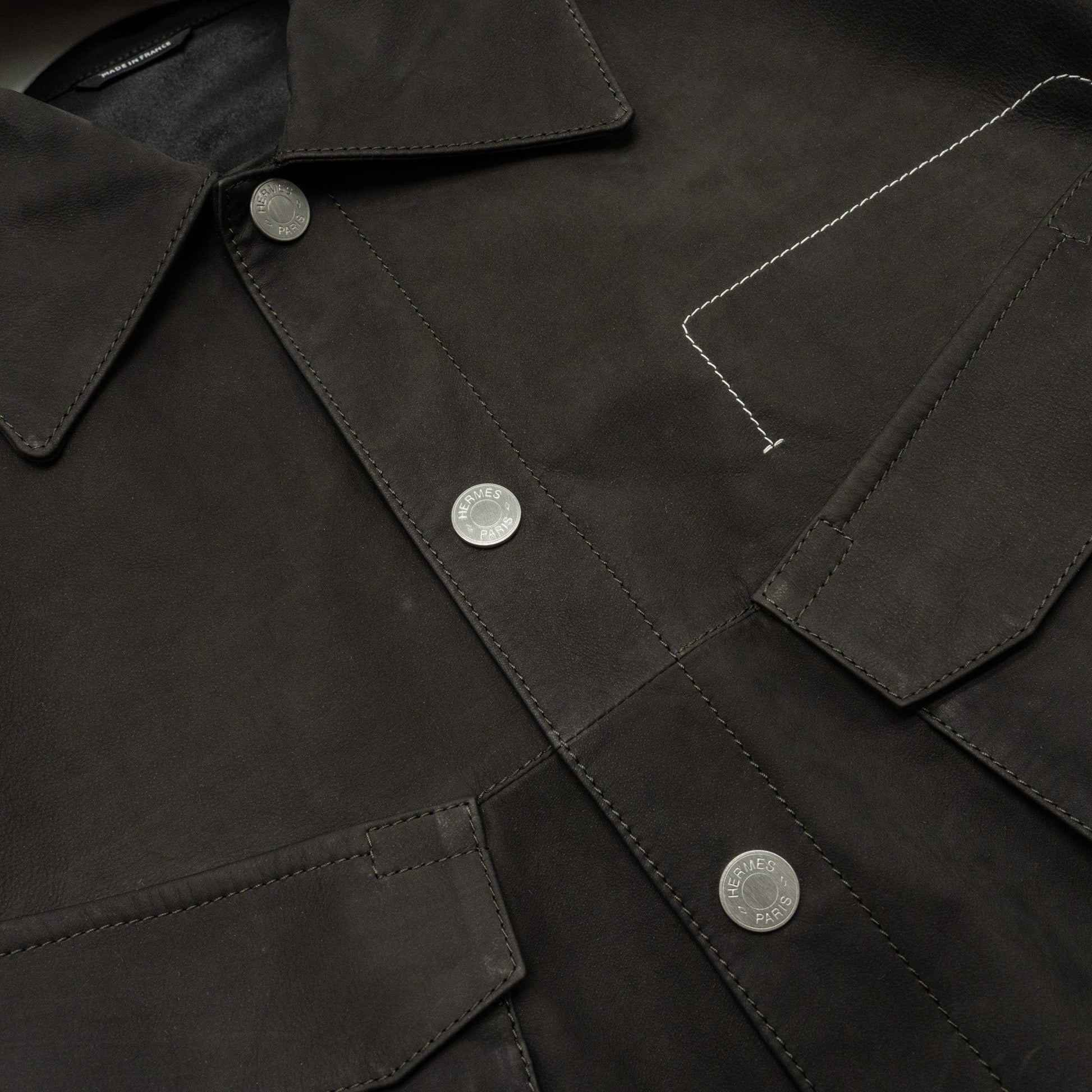 Hermes size 50 mesh surligne shirt calfskin/Cotton black