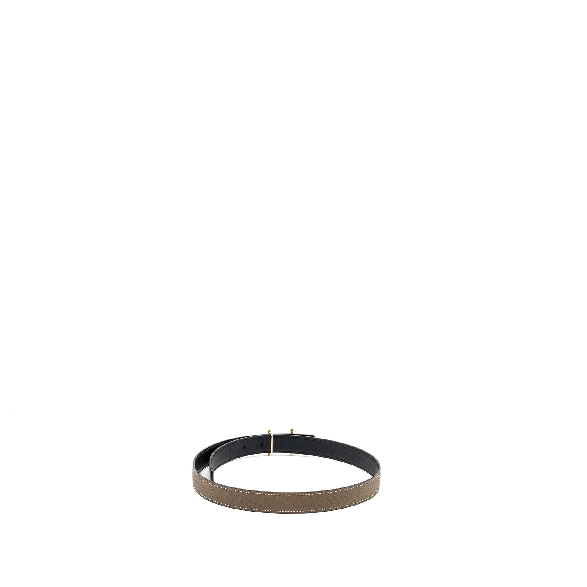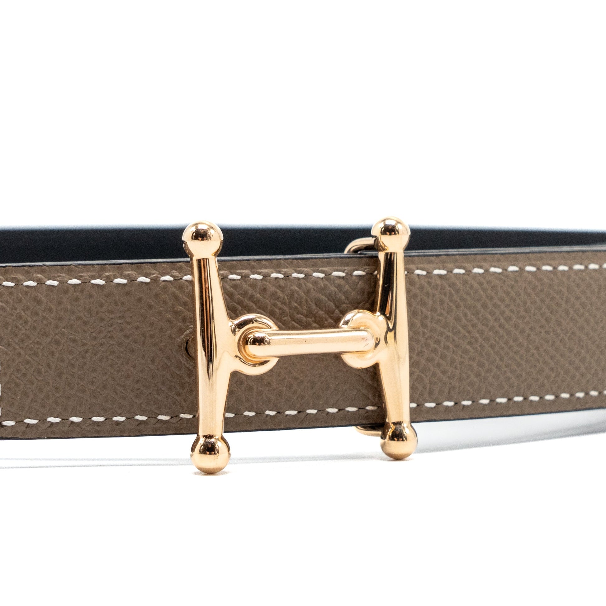 Hermes Size 75 Mors H Belt Buckle & 24mm Reversible Epsom/Swift Strap etoupe / black RGHW Stamp B