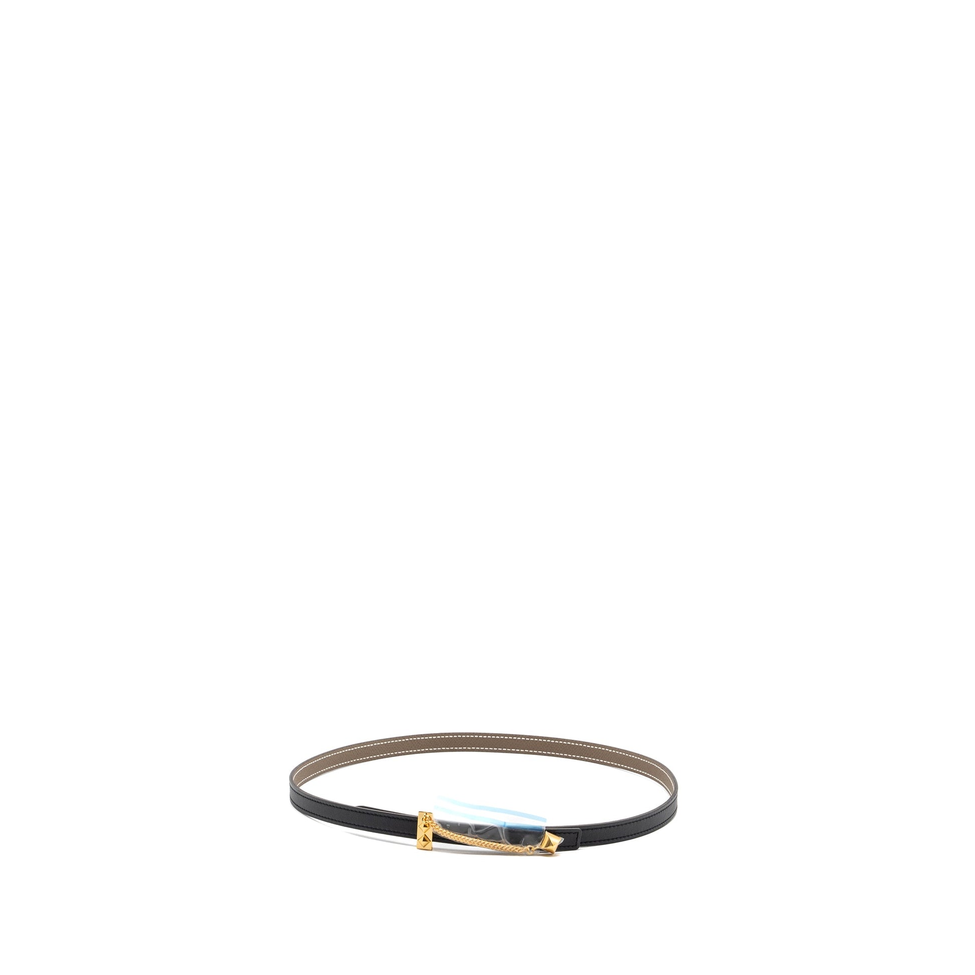 Hermes size 75 reversible leather belt 13mm etoupe / black with gold buckle stamp Z