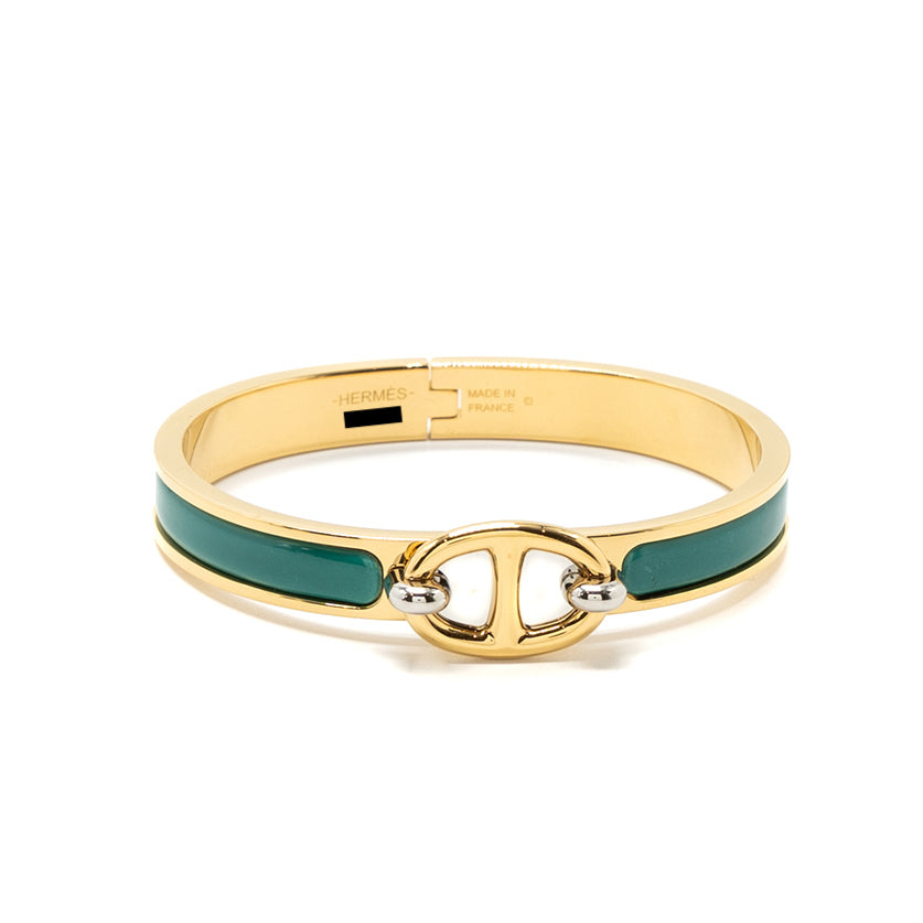 Hermes size PM Mini Clic Chaine d'Ancre bracelet vert Bluetu GHW