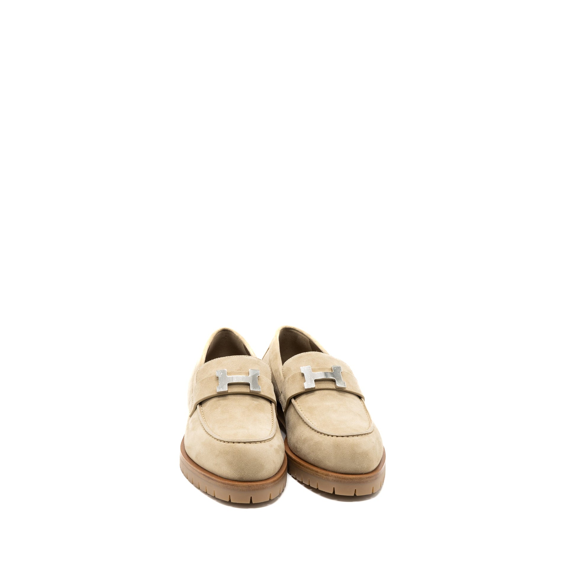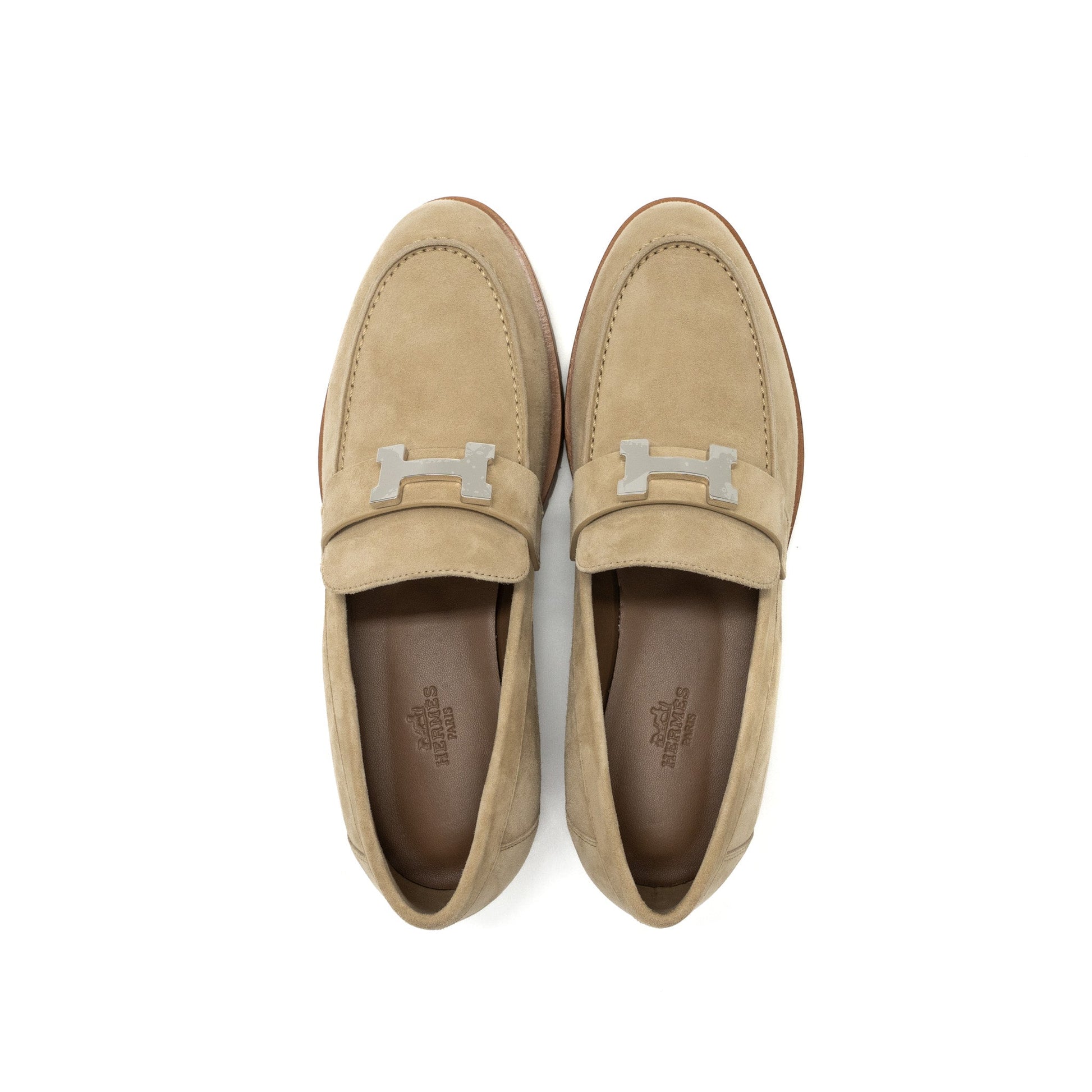 Hermes size37.5 Faubourg Loafer suede goatskin Beige Argile SHW