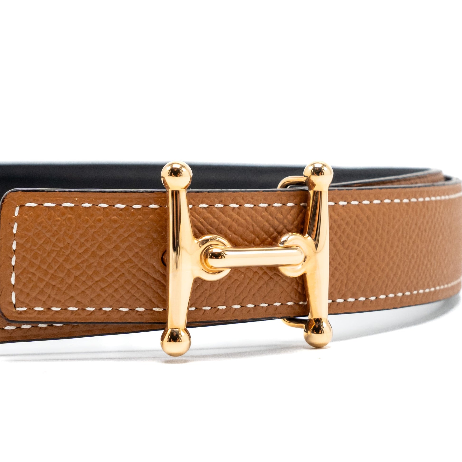 Hermes Size85 Double sided 24mm belt gold with Mors H Buckle Rose gold stamp c