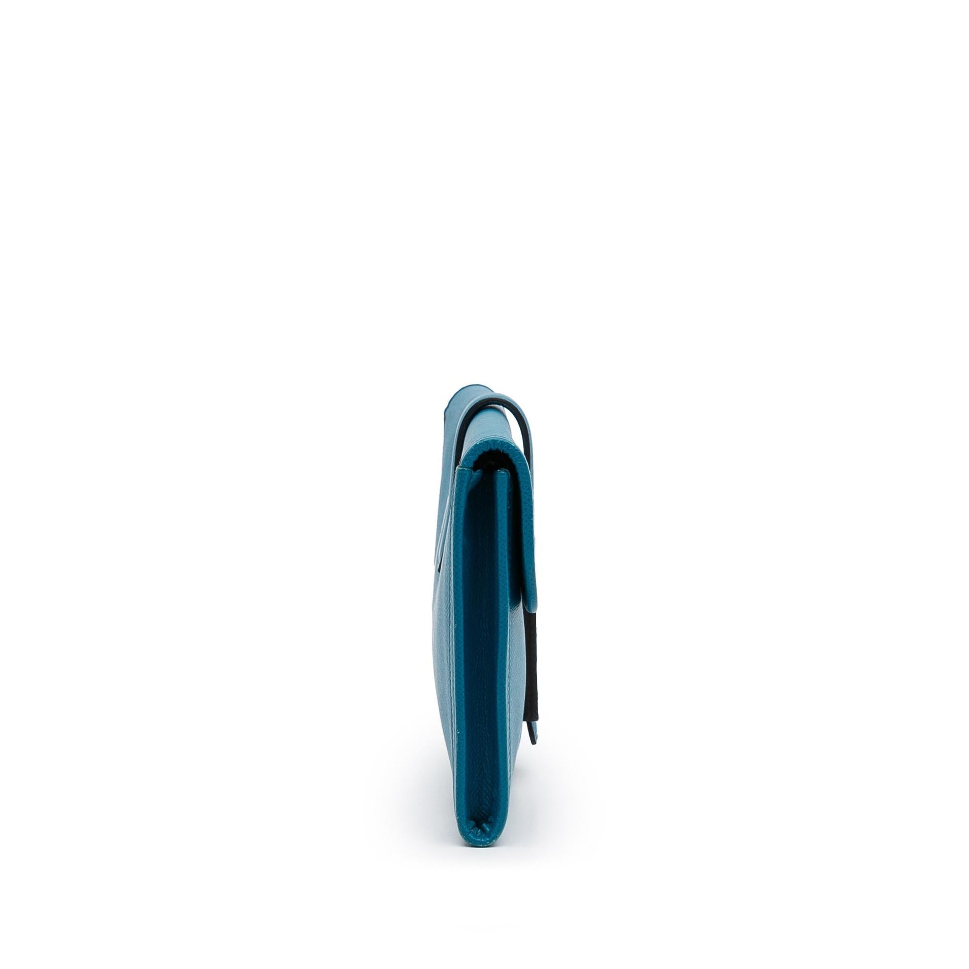 Details: Nothing conveys luxury quite like the high French Fashion HoNew of Hermes. Founded in 1837 as a harness maker, the equestrian-style brand's rich heritage carries on through its traditional 'horse & carriage' logo. The brand’s chief executive designer is Vanhee-Cybulski (2014). Holding the highest of craftsmanship with an assortment of luxurious leathers, each piece from this coveted designer is an exquisite addition to any collection. Condition Notes: Exterior Front Discolored. Exterior Back Discolored. Exterior Bottom Discolored. Exterior Corners Discolored. Exterior Side Discolored. Exterior Top Discolored. Interior Lining Discolored, Scratched. Width (at base): 11.5' Height: 6.25' Depth: 0.5' Type of Material: Calf Color: Blue Origin: France