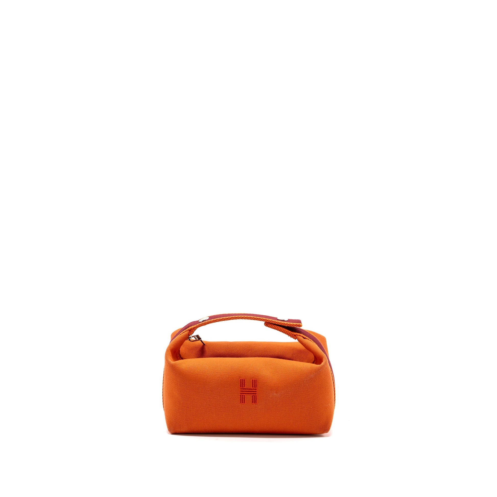 Details: Condition: 9.8/10 Gently New ( This item is in New with m inor rubbing on corners, minor colour transfer on canvas.) Colour: Orange Feu Hardware Colour: Silver Tone Measurement: Length: 21 cm Height: 13 cm Depth: 12 cm Material : Canvas Origin : France Inclusion: Box, Copy of Receipt