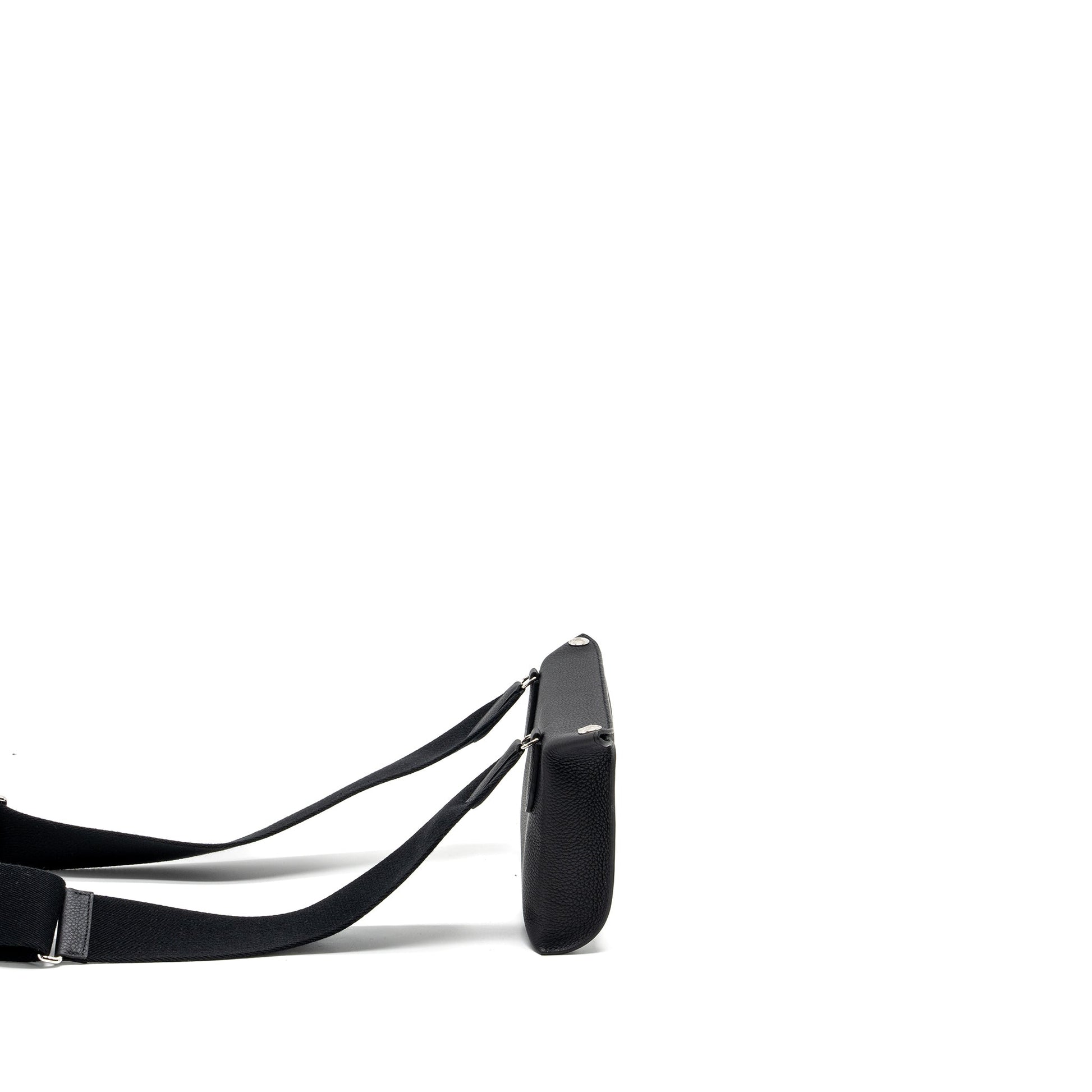 Details: Condition: 10/10 Unused ( This item is in unused and New condition. ) Colour: Black Hardware Colour: Silver Tone Measurement: Length: 20.5 cm Height: 16 cm Depth: 4 cm Strap Drop: ~43 cm (Adjustable) Material : Togo Leather Stamp: B (2023) Origin :