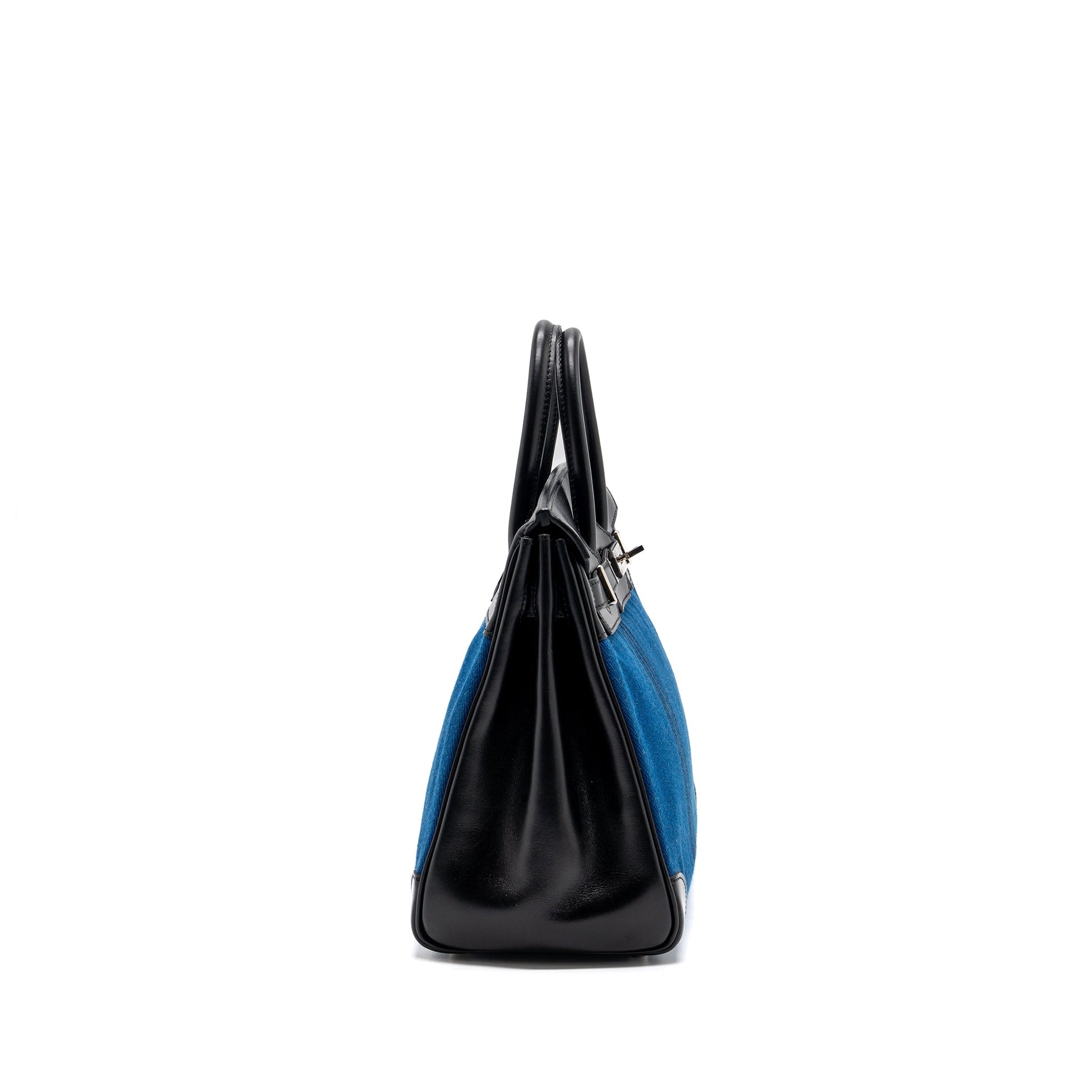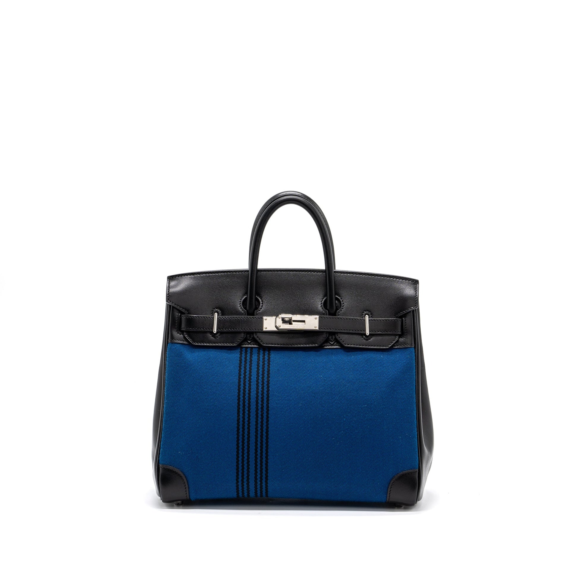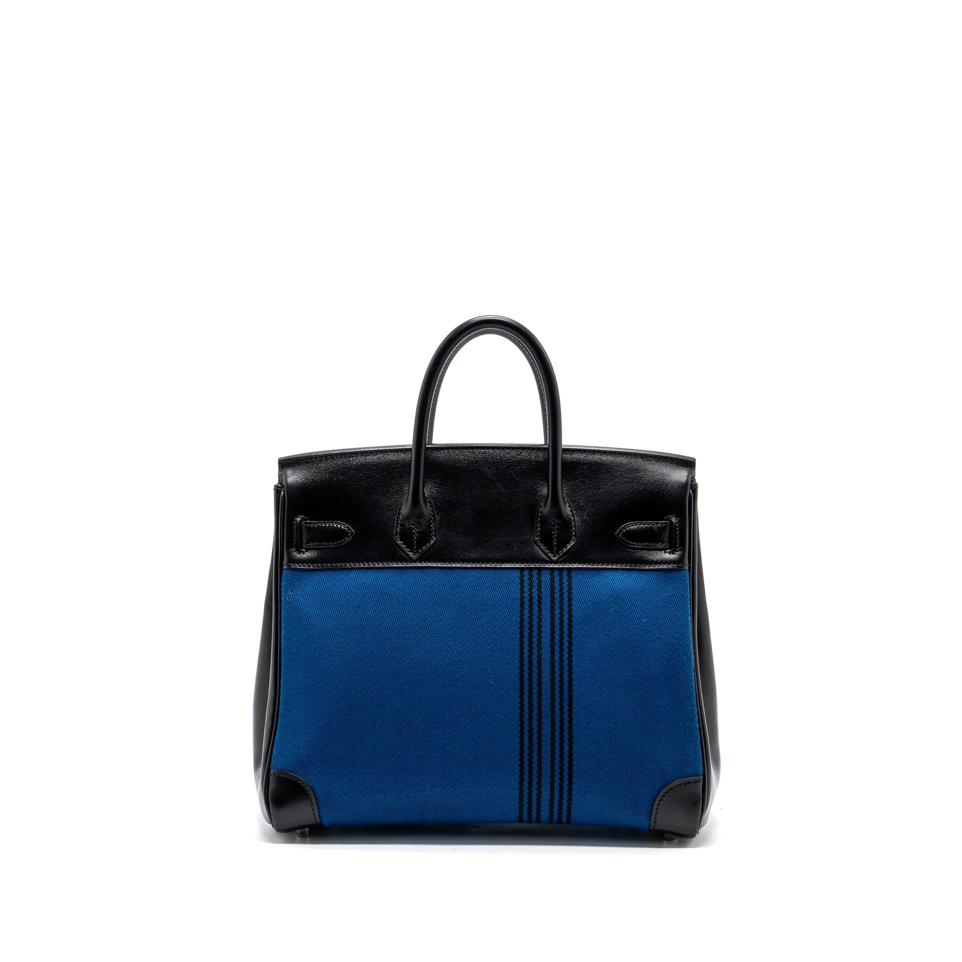Hermes vintage birkin hac 28 toile Potamus black / blue SHW stamp square J