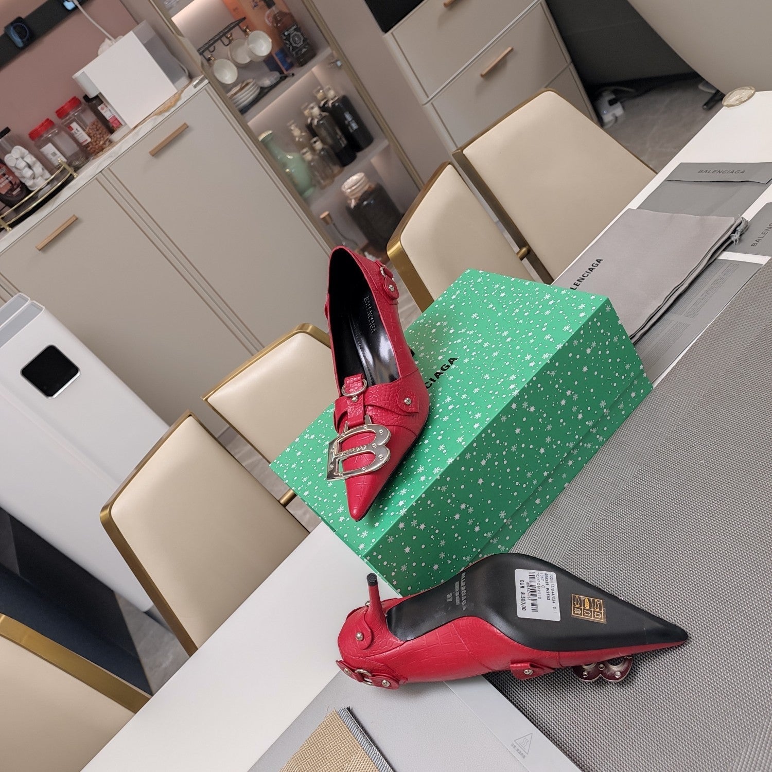 Balanciaga HIGH PUMPS WITH B SILVER BUCKLE IN RED CROCODILE PATTERN CALFSKIN