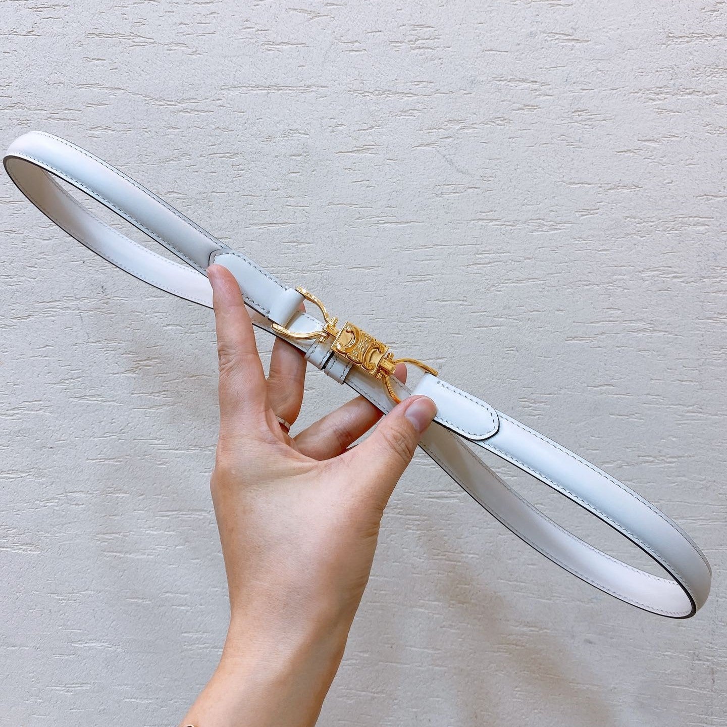 Celine Hook & Loop 20mm TRIOMPHE Logo Square Adjustable Belt White Calfskin Ghw