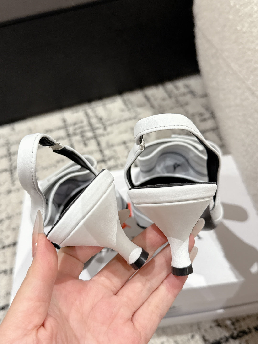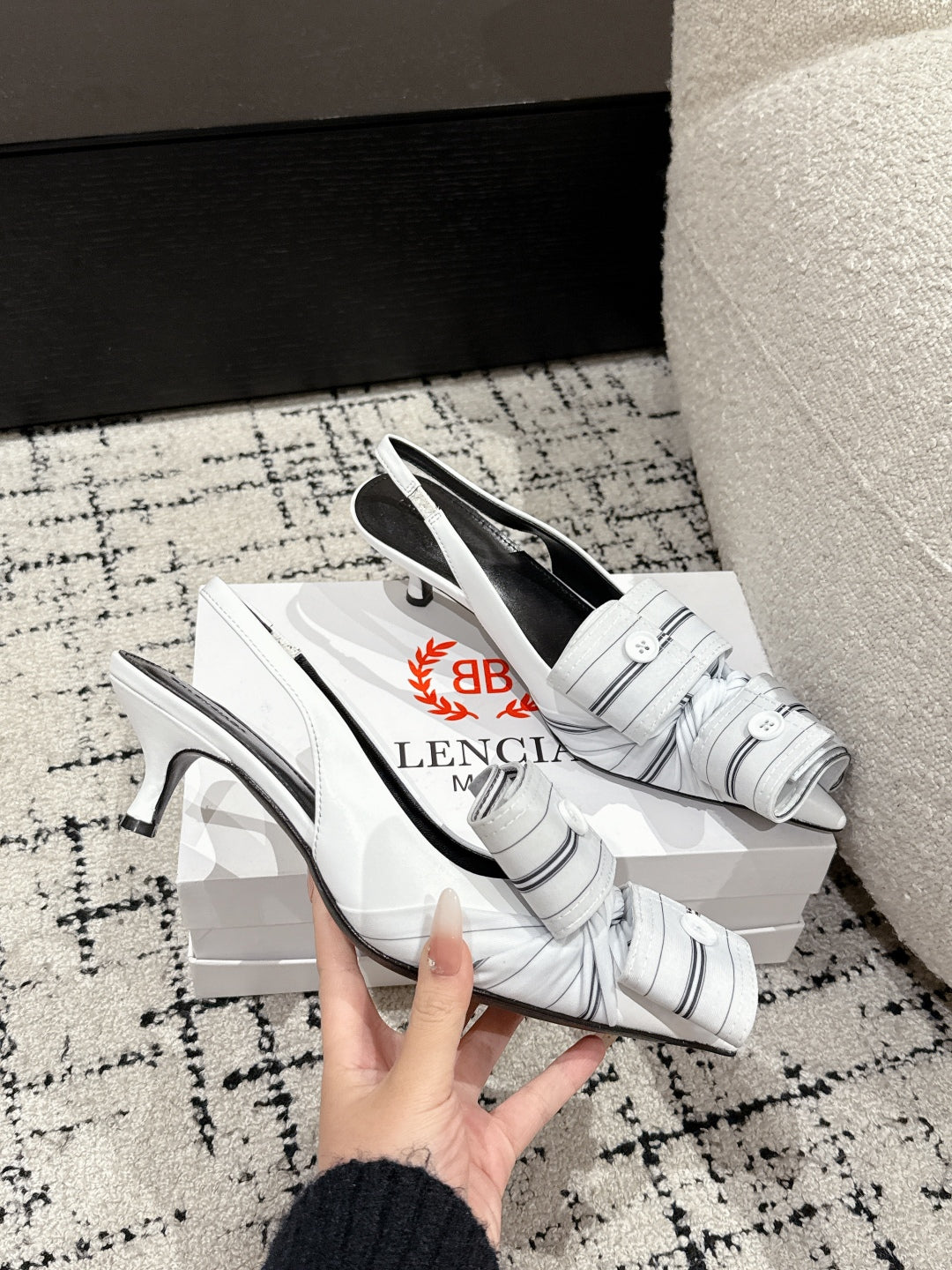 Balanciaga KNIFE CHEMISE 45MM SLINGBACK IN WHITE MIX BLACK COTTON AND CALFSKIN