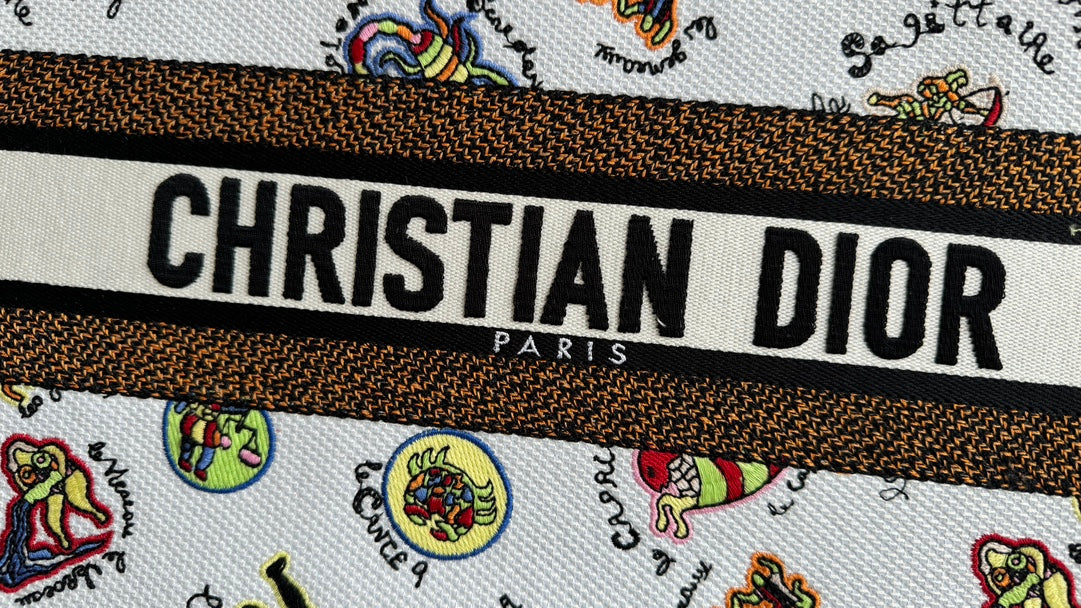DIOR Medium Book Tote 36cm White Multicolor Dragon Zodiac Embroidery