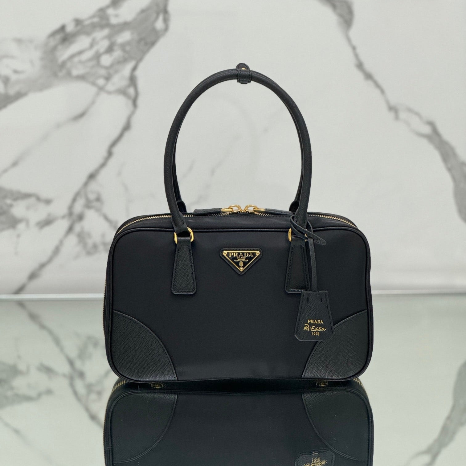 PRADA MEDIUM TOP HANDLE BAG 30 IN BLACK NYLON AND CALFSKIN TRIM