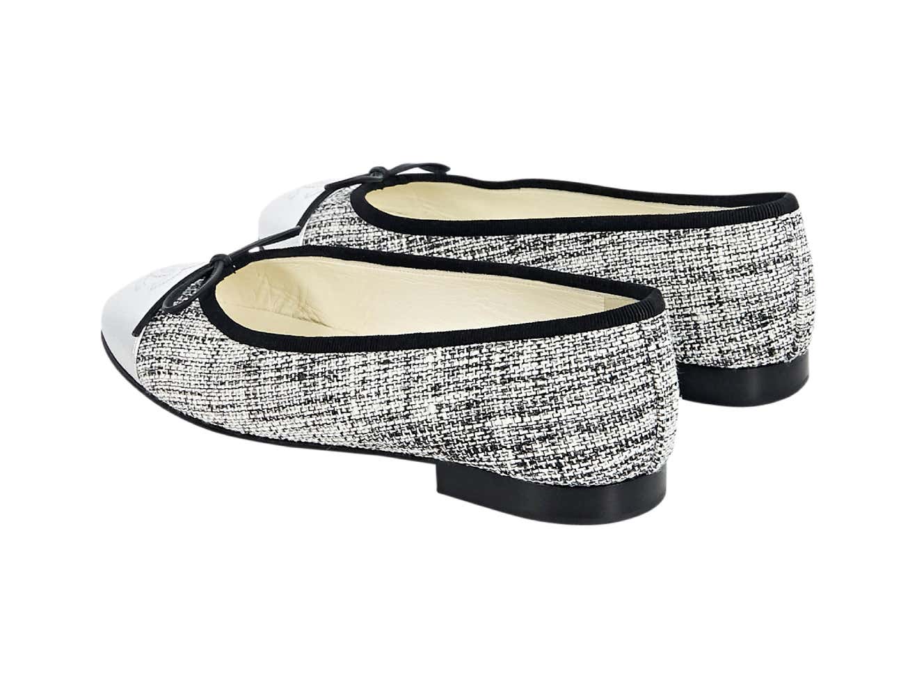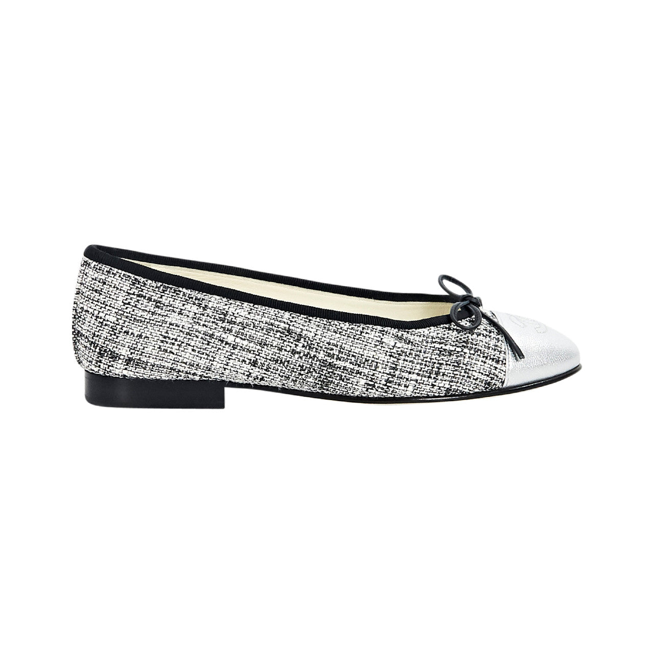 Metallic Silver Chanel Tweed Cap-Toe Ballet Flats