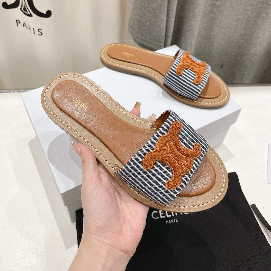 Celine LYMPIA MULE IN TRIOMPHE JACQUARD WOOLLEN FABRIC BROWN BLACK CARO