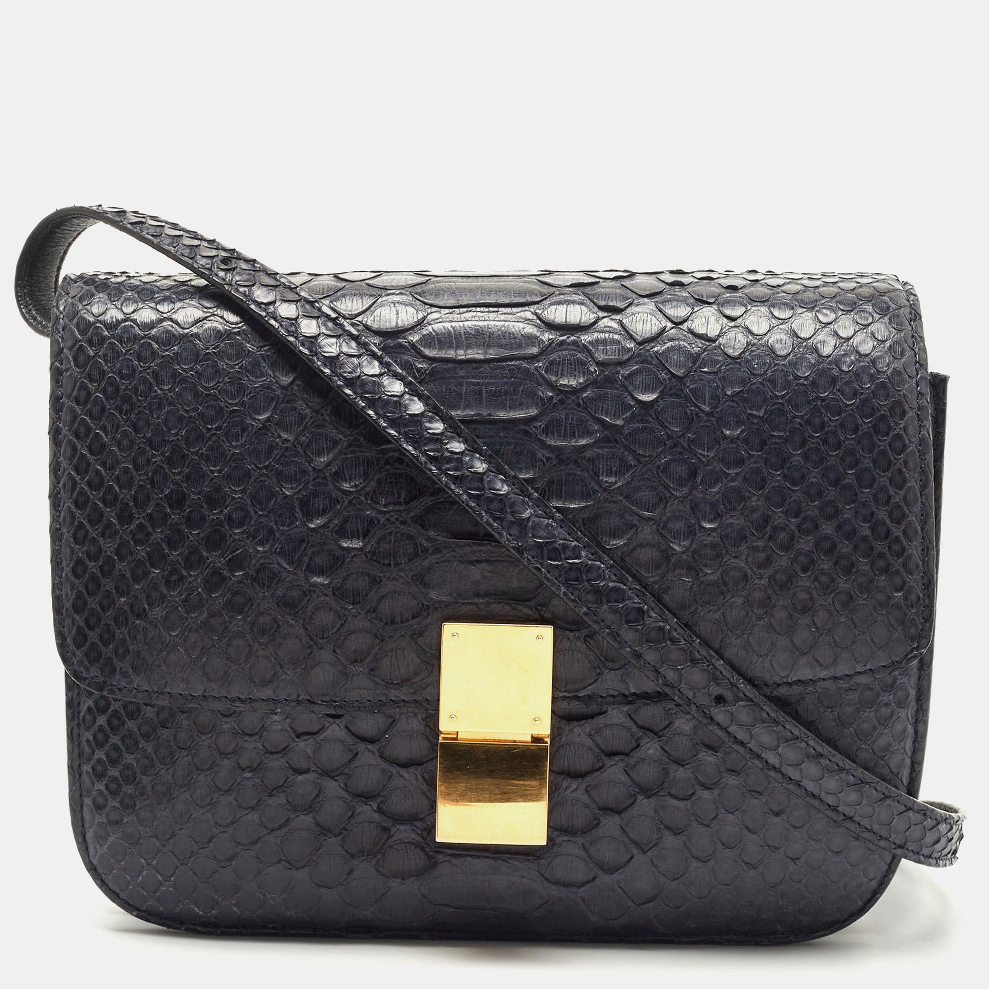 Discover the Celine Navy Blue Python Medium Classic Box Shoulder Bag, a stunning addition to any designer luxury handbags collection. Crafted from high-quality python leather, this bag combines elegance with practicality, making it perfect for both day and evening wear. With its timeless design, Celine stands as a symbol of luxury and craftsmanship. Use our price comparison platform to find the best deals and buy luxury handbags online with confidence. Trust our expertise to guide you through the options, ensuring you receive quality and value. Elevate your style with this iconic piece and enjoy the prestige of the Celine brand.