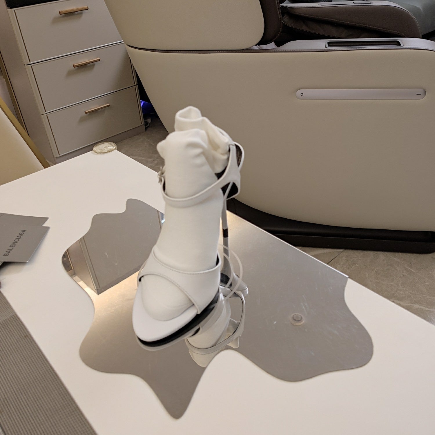 Balanciaga OPEN TOE STRAPPY HIGH HEEL IN WHITE CALFSKIN