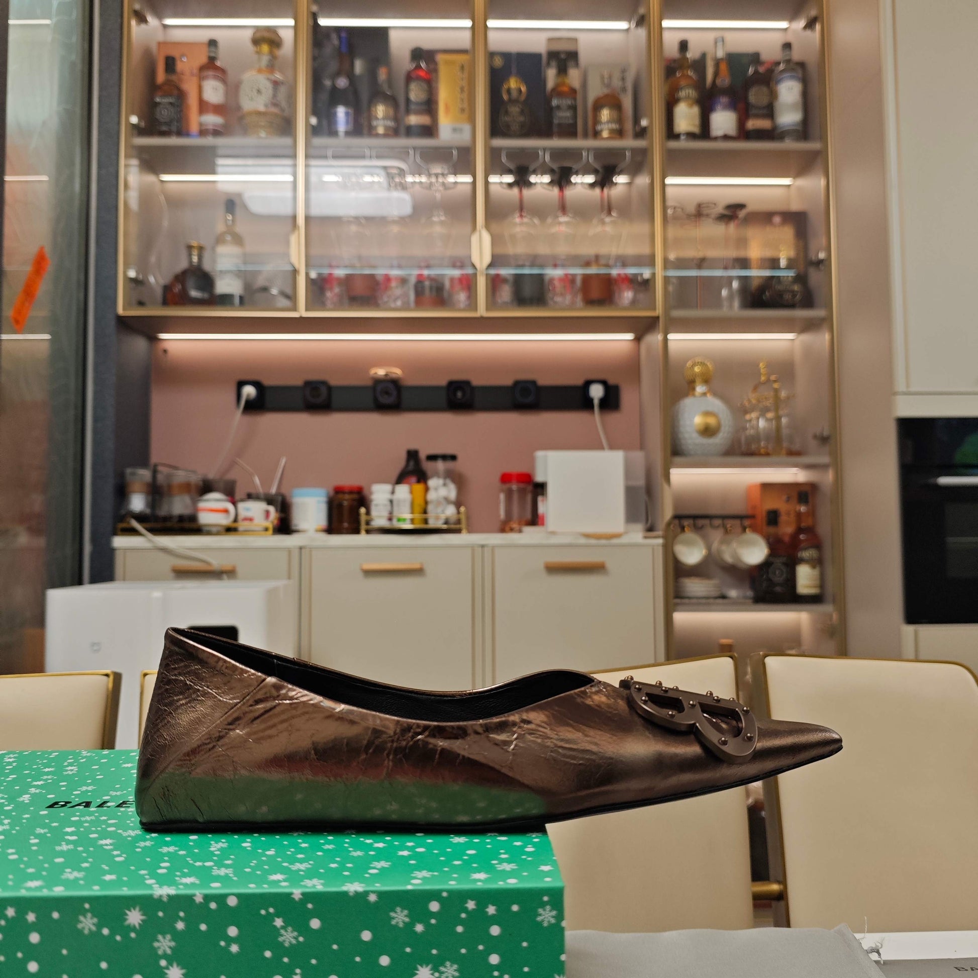 Balanciaga POINTED BALLET FLATS IN CHOCOLATE SHINY CRACKED SHEEPSKIN