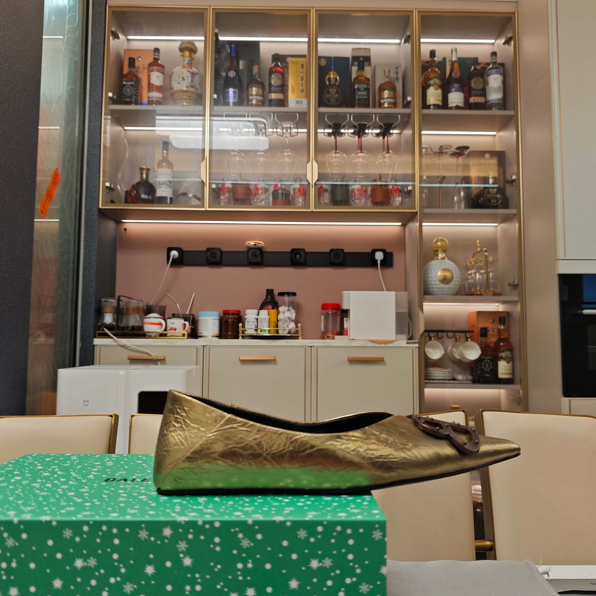 Balanciaga POINTED BALLET FLATS IN GOLD METALLIC SHINY CRACKED SHEEPSKIN