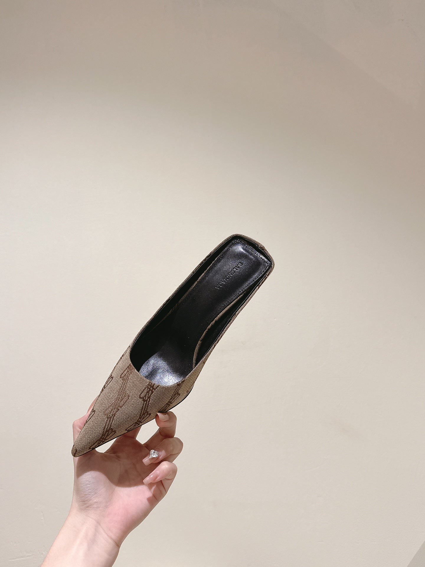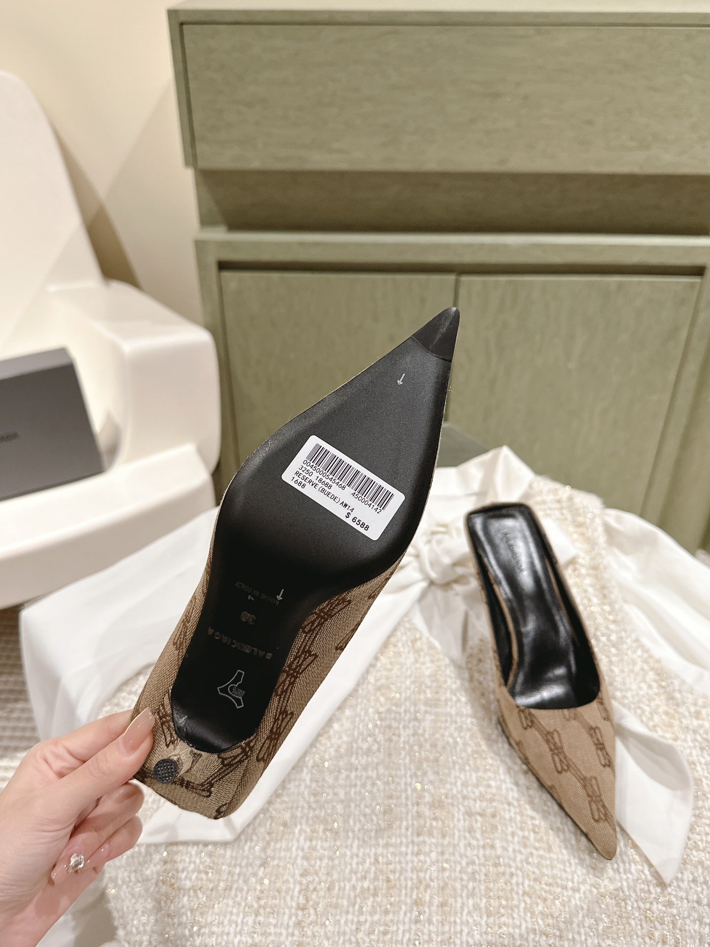 Balanciaga POINTED HIGH MULES IN BEIGE MONOGRAM JACQUARD FABRIC