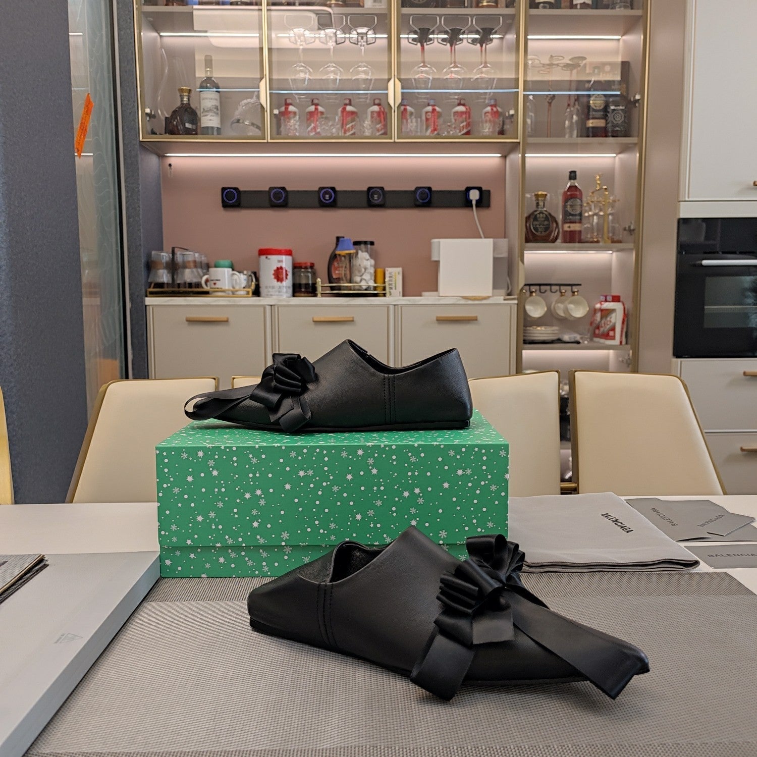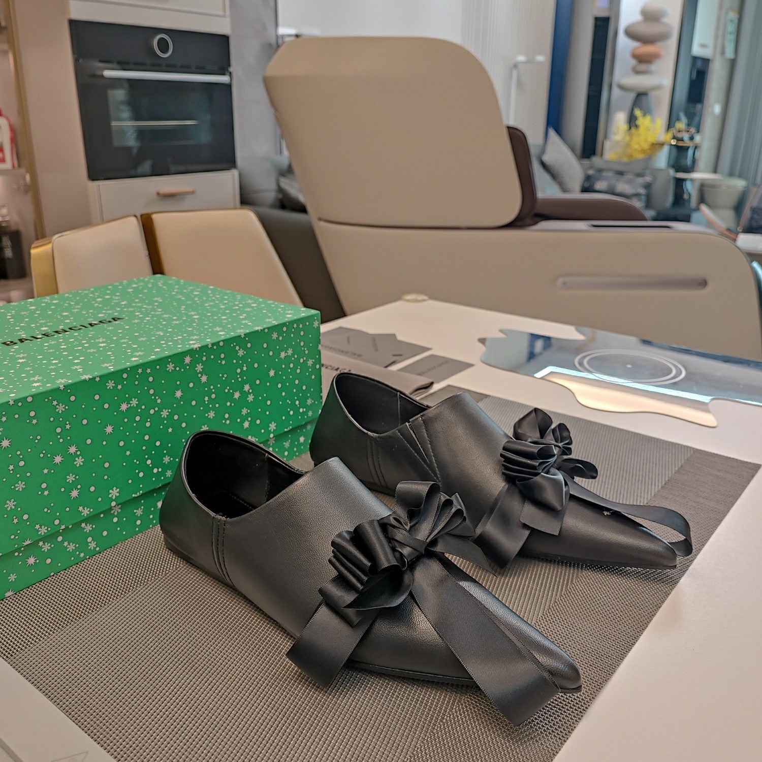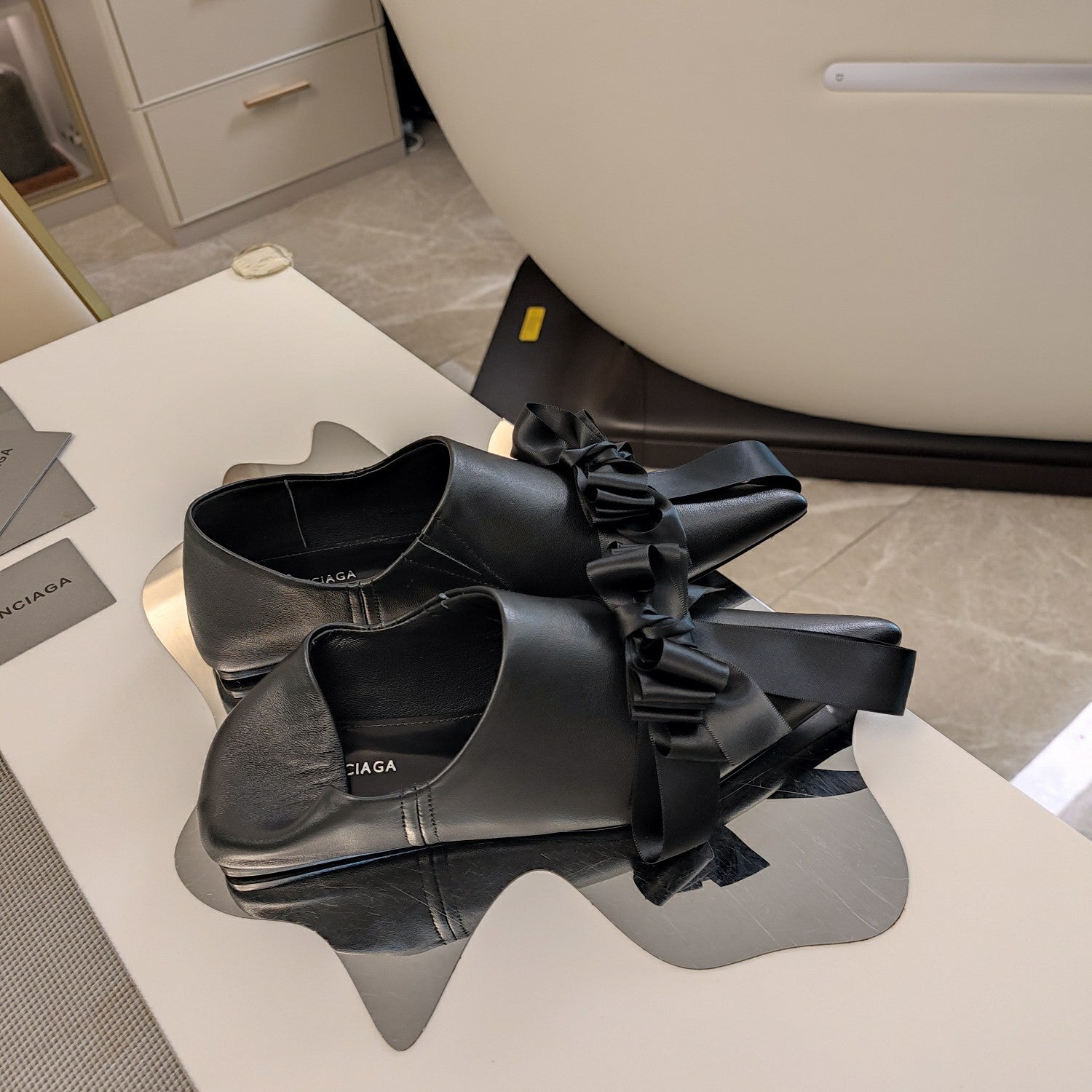 Balanciaga POINTED-TOE FLATS WITH BOW IN BLACK SOFT LAMBSKIN