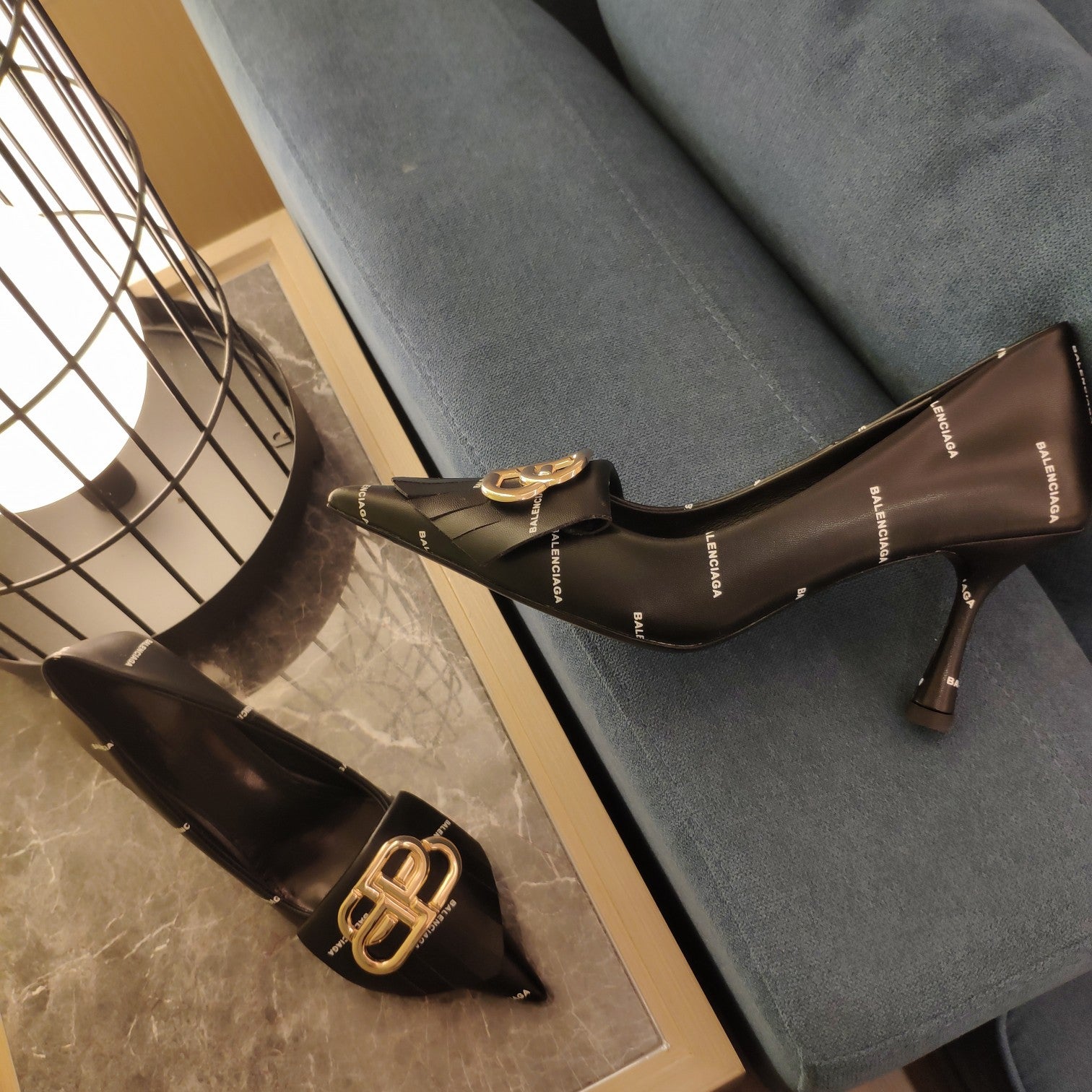 Balanciaga POINTED TOE PUMPS BLACK WITH LOGO PRINT SMOOTH CALFSKIN