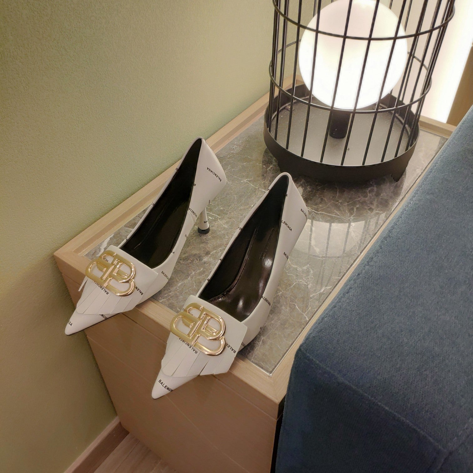 Balanciaga POINTED TOE PUMPS WHITE WITH LOGO PRINT SMOOTH CALFSKIN