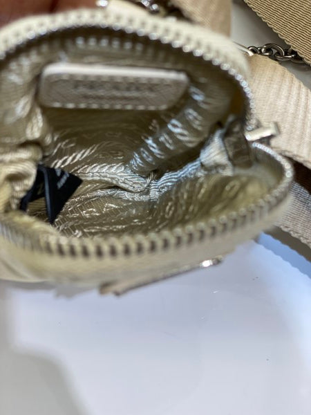 - Material: Beige Re-Nylon with Saffiano Leather Trim