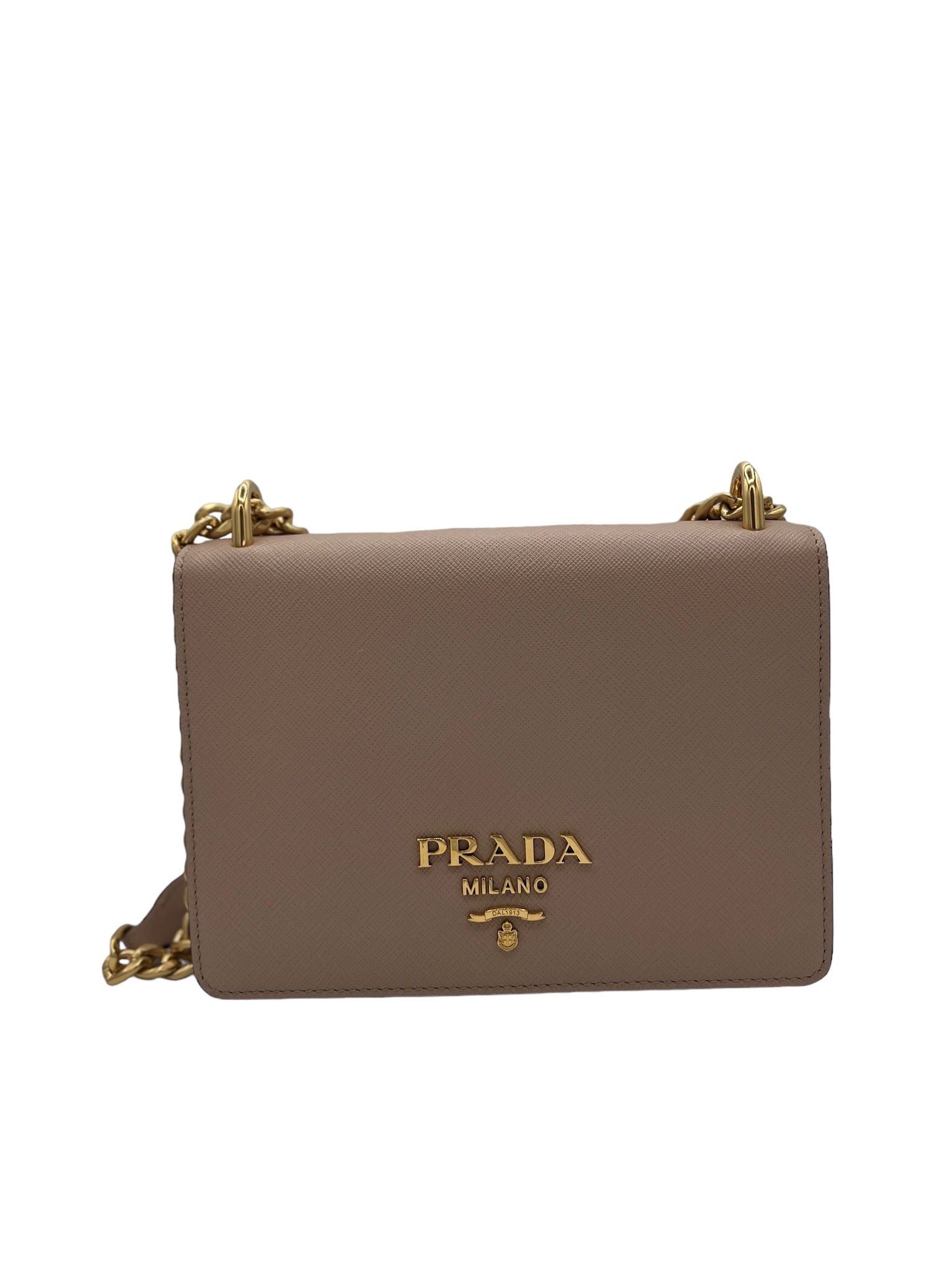 PRADA - Beige Saffiano Leather Shoulder Bag