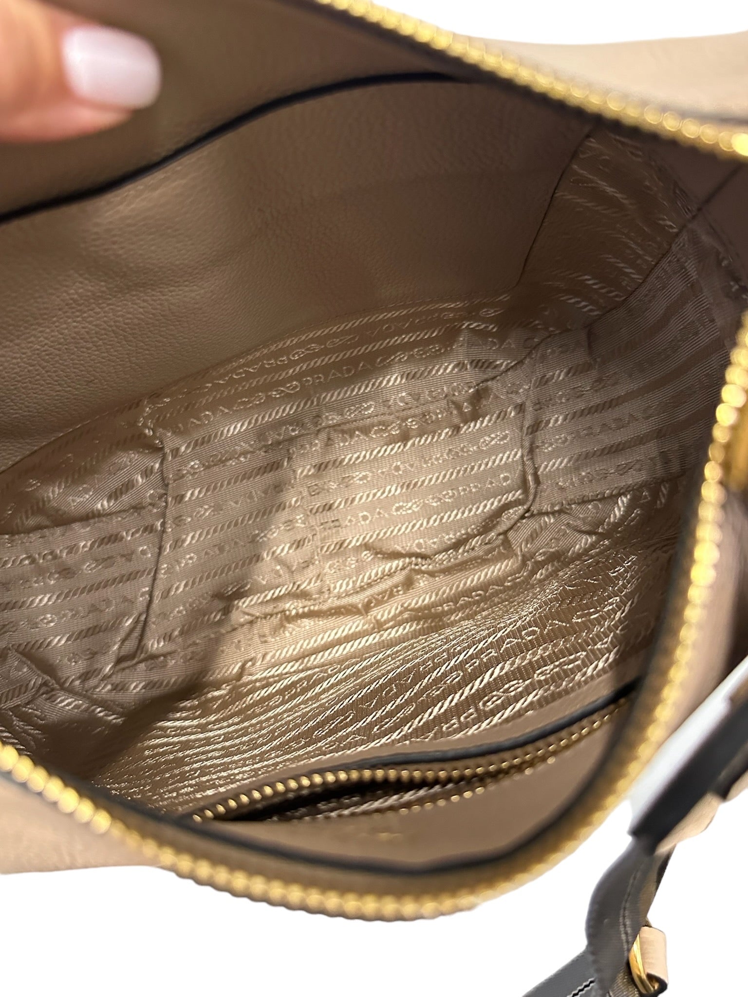 PRADA - Beige Vitello Danio Soft Zip Messenger Hobo
