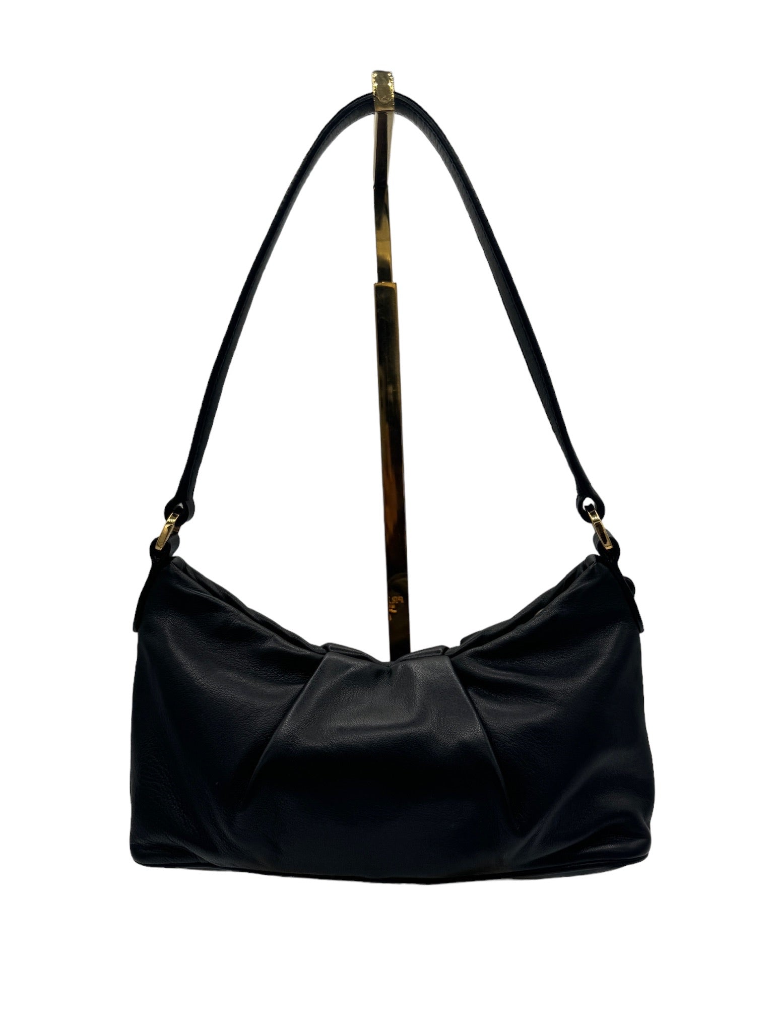 - Black Leather Fabrication: Crafted from high-quality leather in a classic black color, this bag exudes sophistication and luxury.