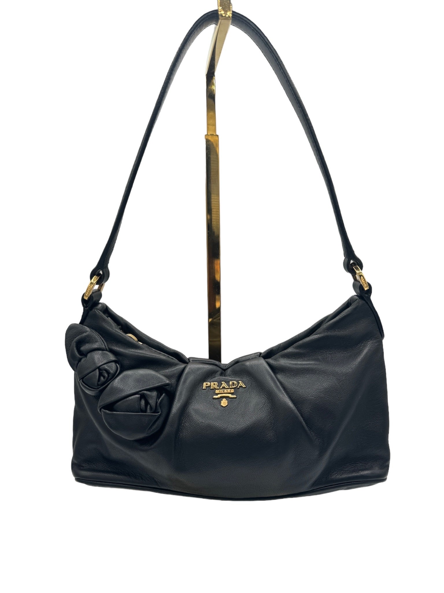 PRADA - Black Glace Leather Rose Shoulder Bag