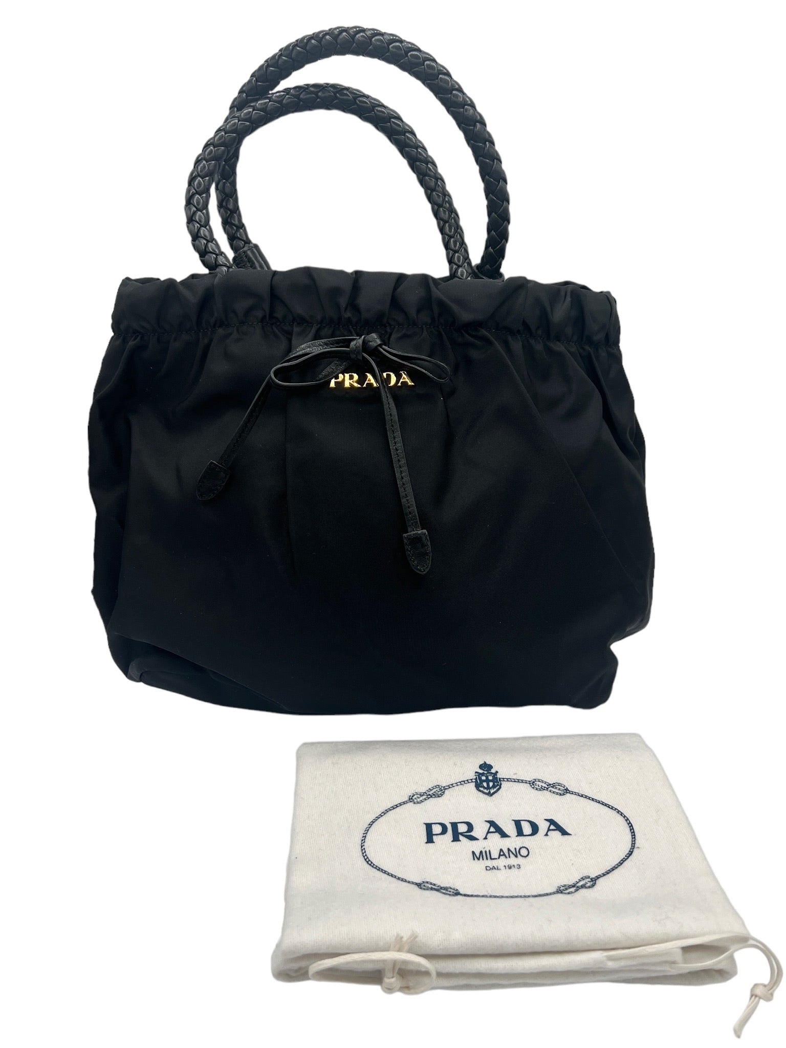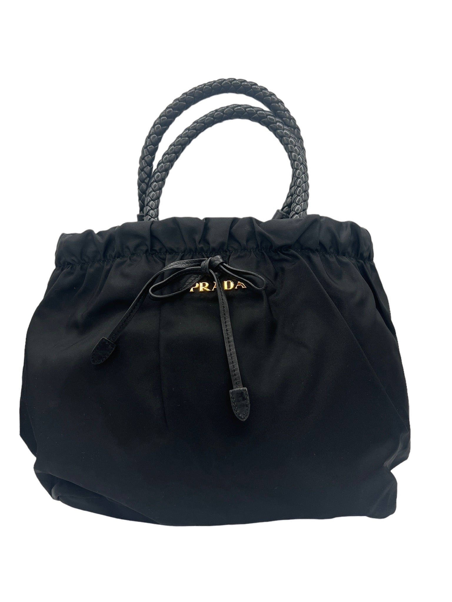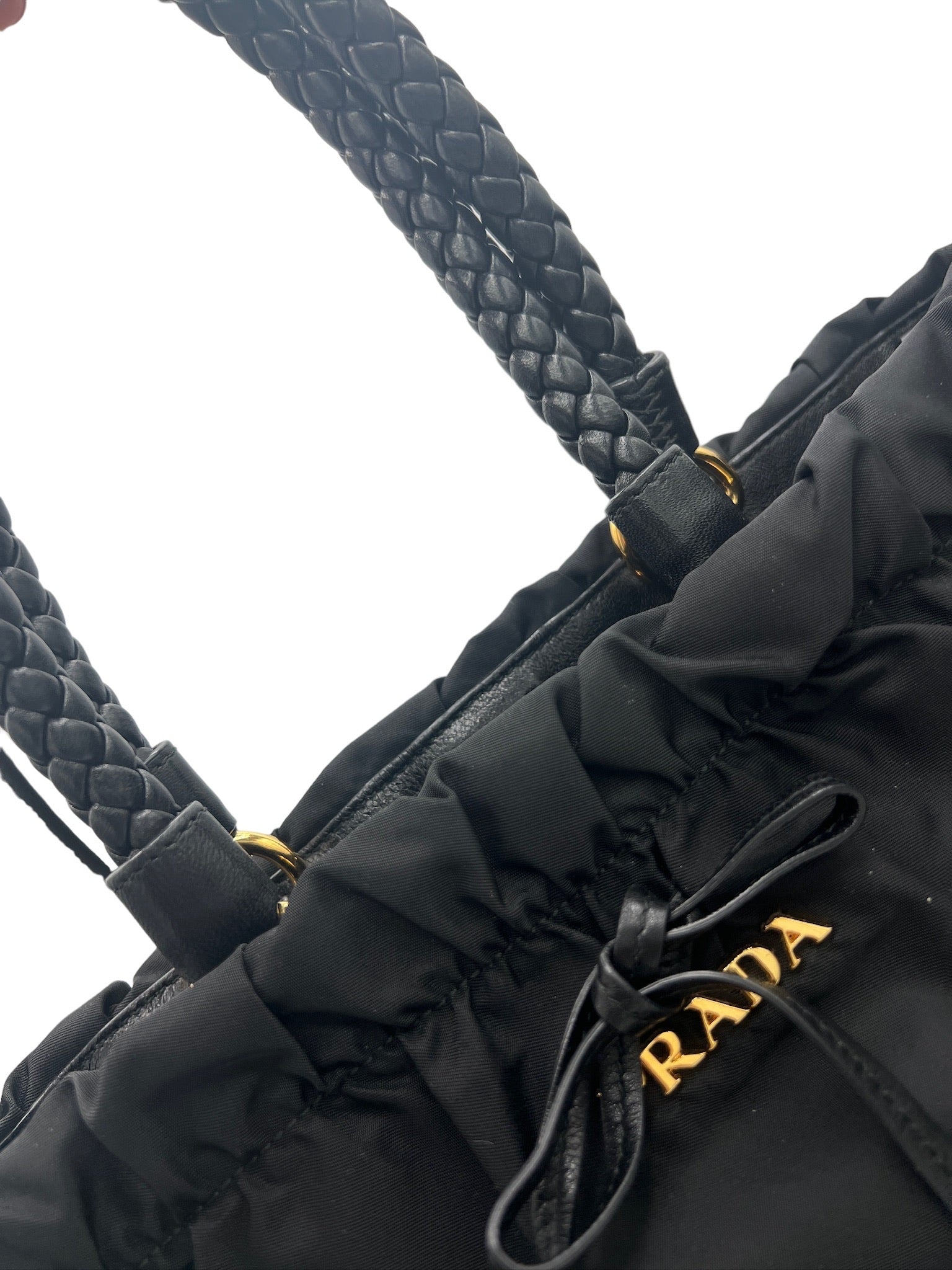 PRADA - Black Nylon Leather Gathered Tote Bag
