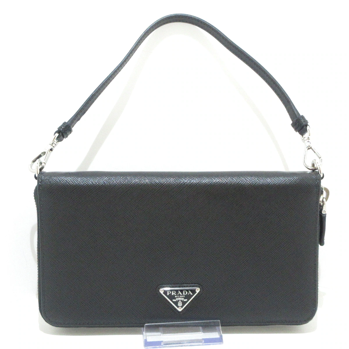 PRADA - Black Saffiano Leather Document Holder Other Style Wallet