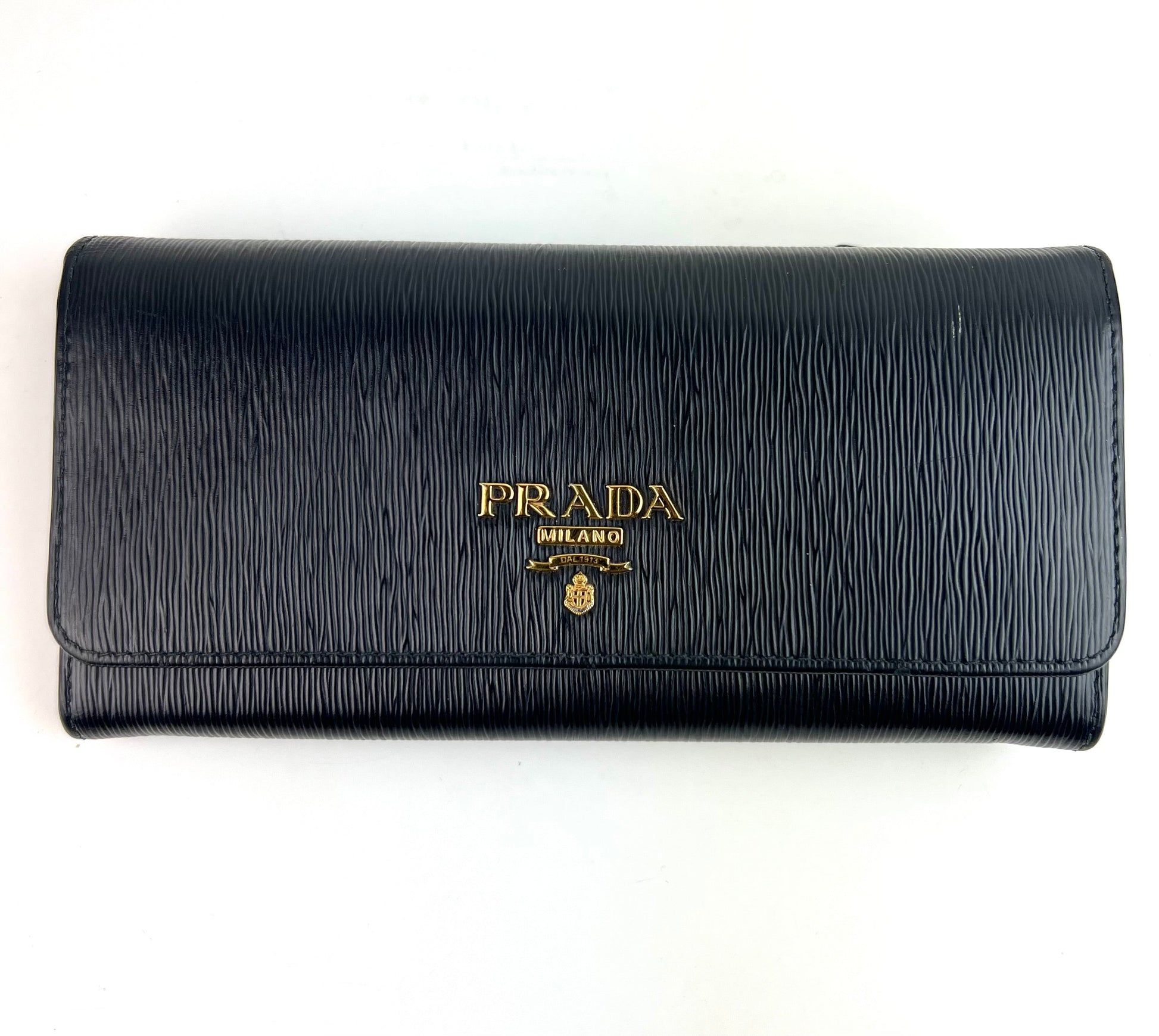 Prada Black Vitello Move Continental Wallet in black or . This product is in Great condition .